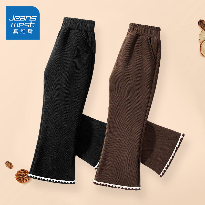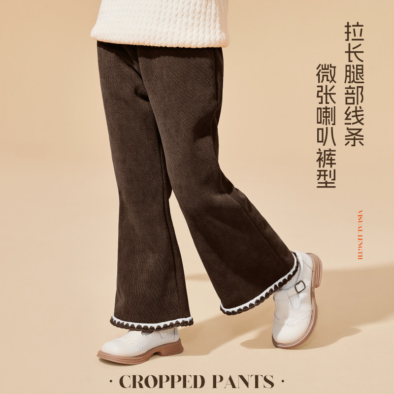 真维斯童装女童裤子秋冬款儿童冬季加绒喇叭裤女孩灯芯绒冬装长裤
