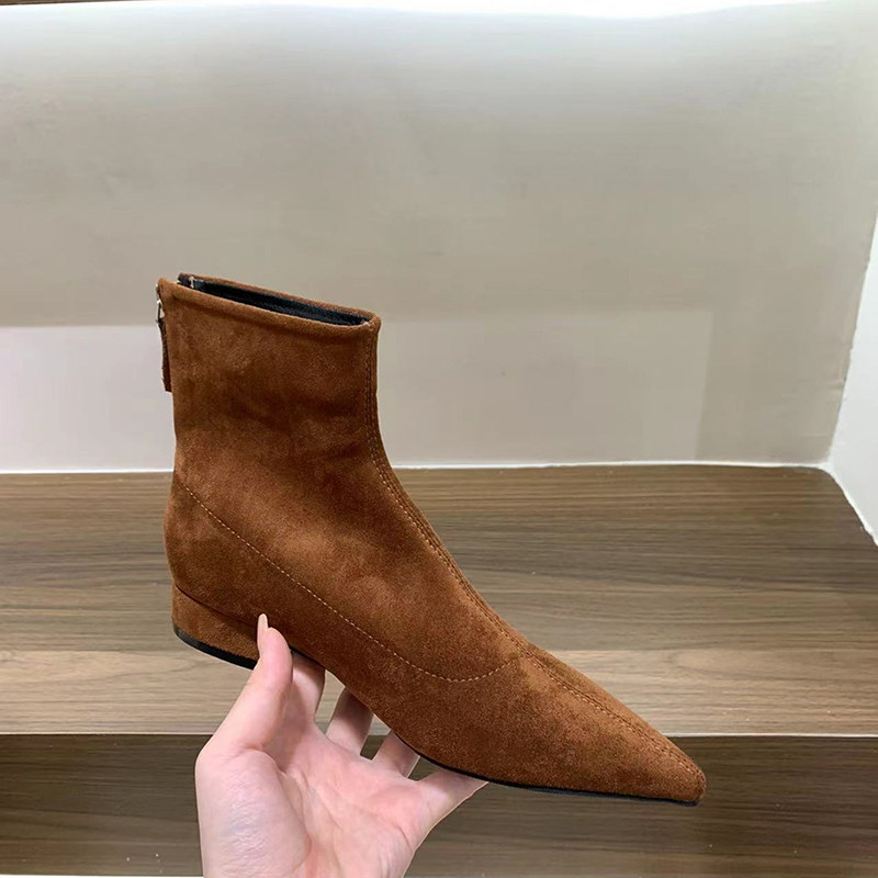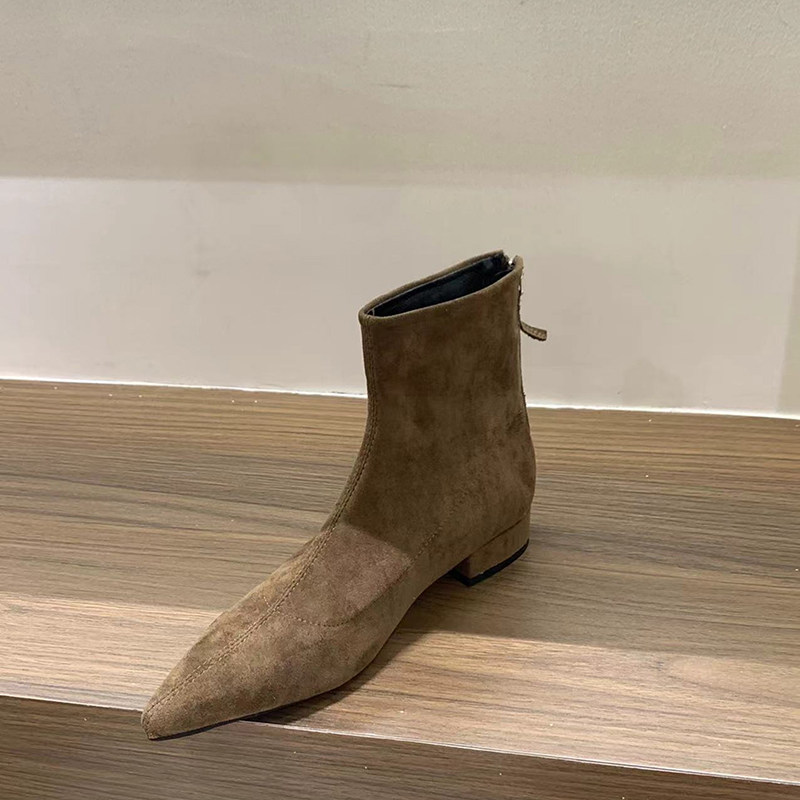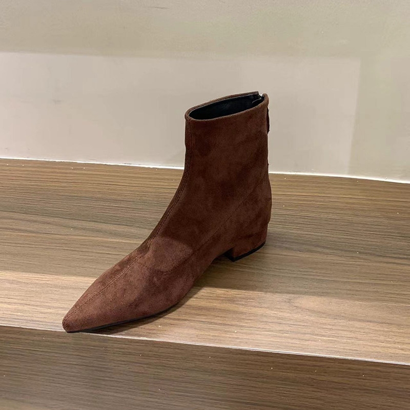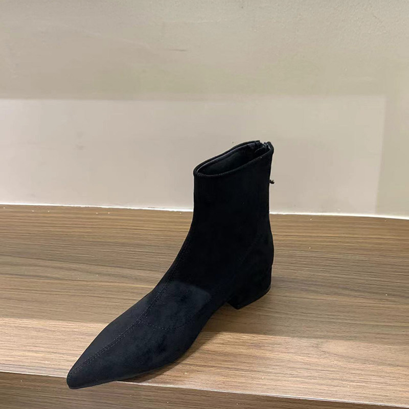 尖头粗跟瘦瘦靴女绒面韩系小短靴