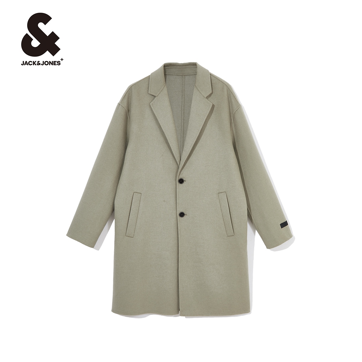 杰克琼斯outlets冬男中长款含羊毛商务休闲纯色毛呢大衣外套男装