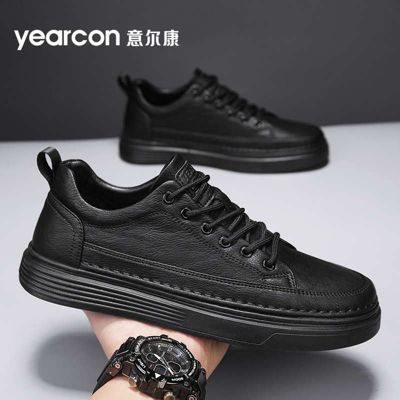 意尔康板鞋男款2026新款春秋冬季加绒棉爆款百搭爸爸男士休闲皮鞋