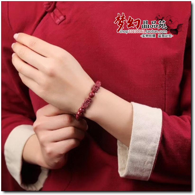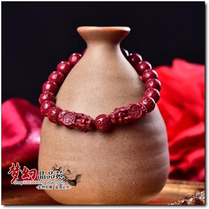 原矿高含量朱砂紫金砂六字真言珠配双貔貅手链皮休手串招财护身符