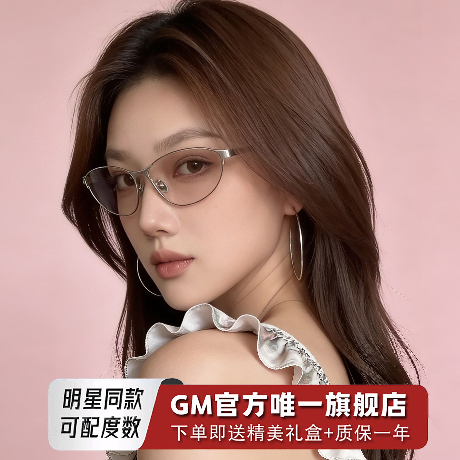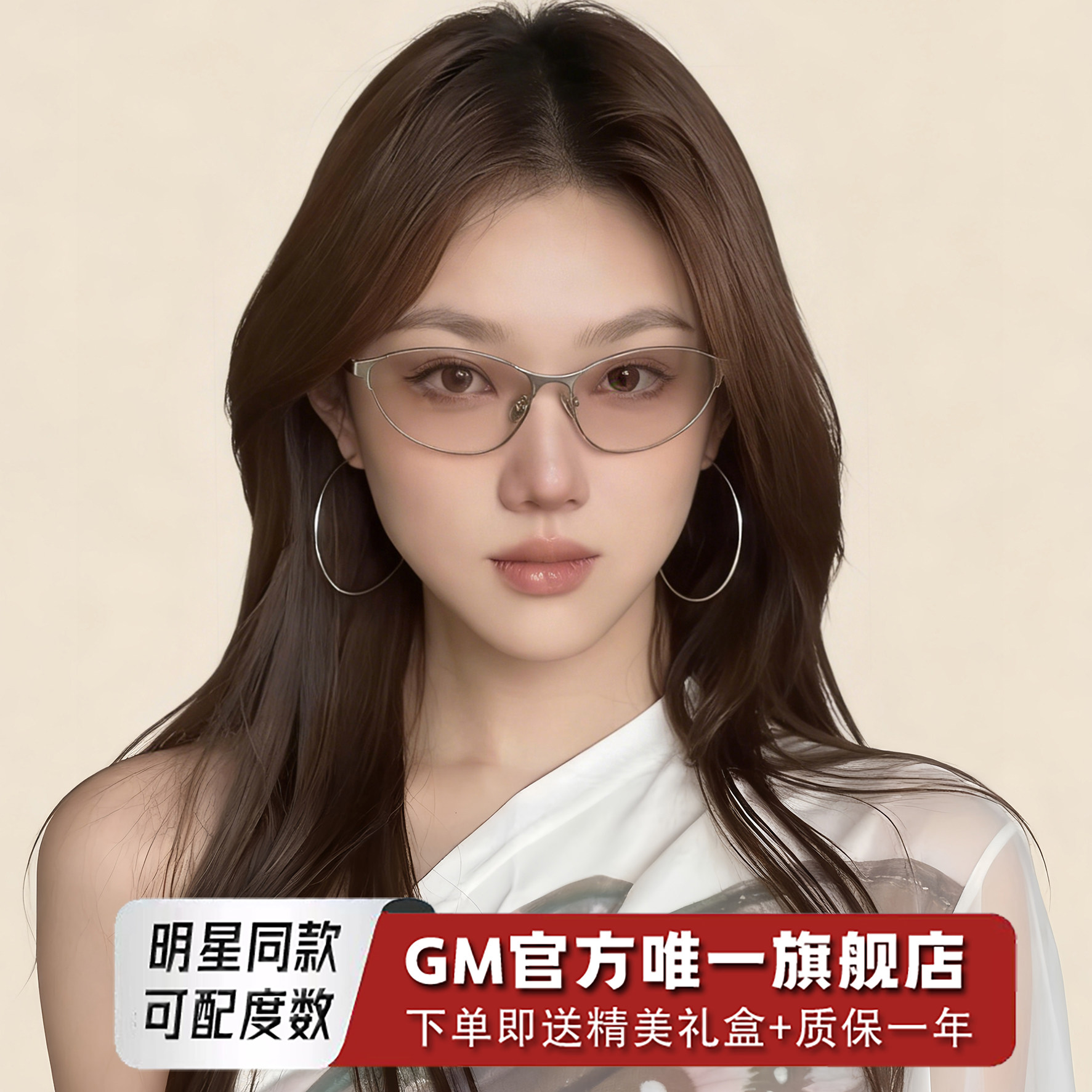 GM墨镜太阳眼镜浅灰男女同款老钱风金属猫眼防紫外线近视带度数PK