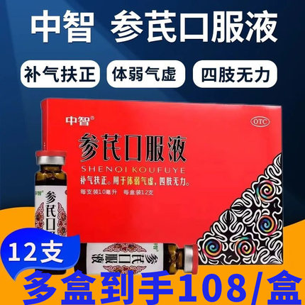 中智参芪口服液12支体弱气虚四肢无力体虚产后术后补气调理中成药
