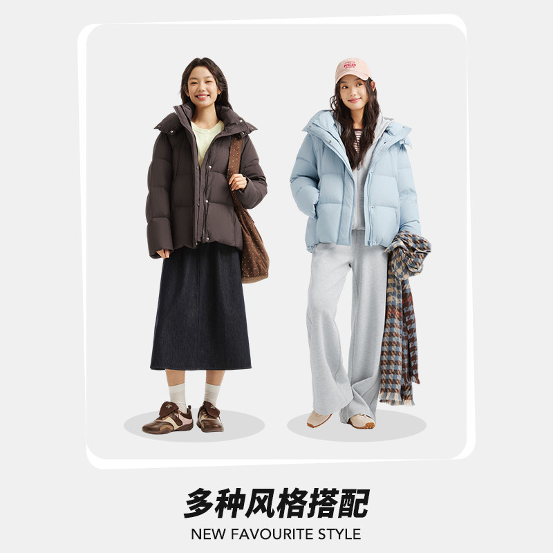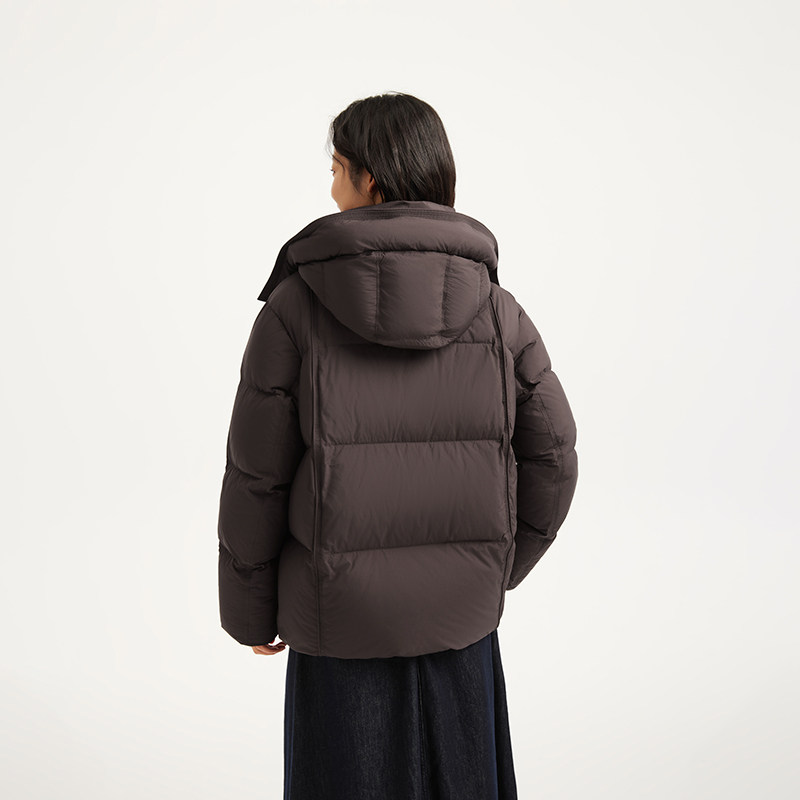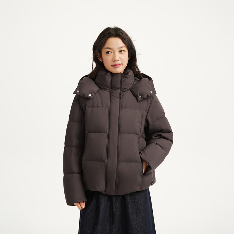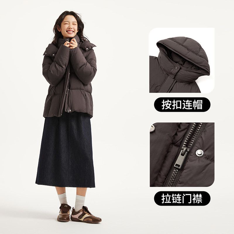 热风女士连帽泡芙羽绒服2025年冬季新款保暖连帽蓬松羽绒服外套