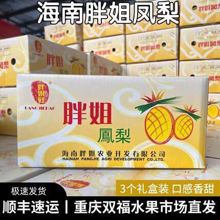 海南胖姐凤梨3枚礼盒装净重约4.5-5斤送礼伴手礼客户员工团购双福