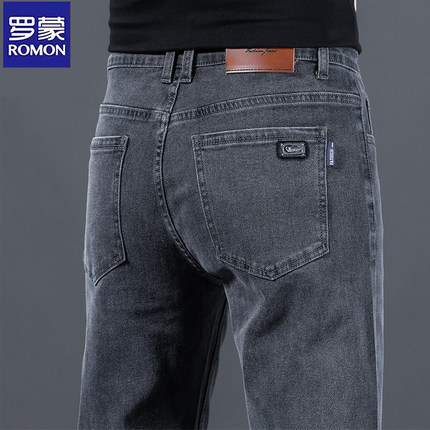 罗蒙牛仔裤男直筒烟灰色直筒加绒