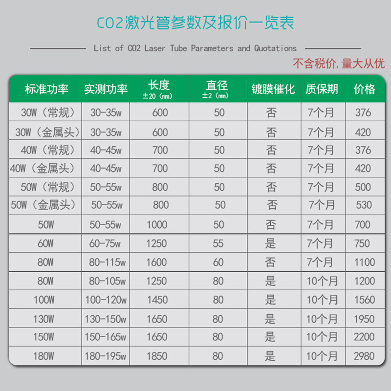 CO2激光管 40W 60W 80W 100W 150W 激光刻章机 切割机 雕刻机配件