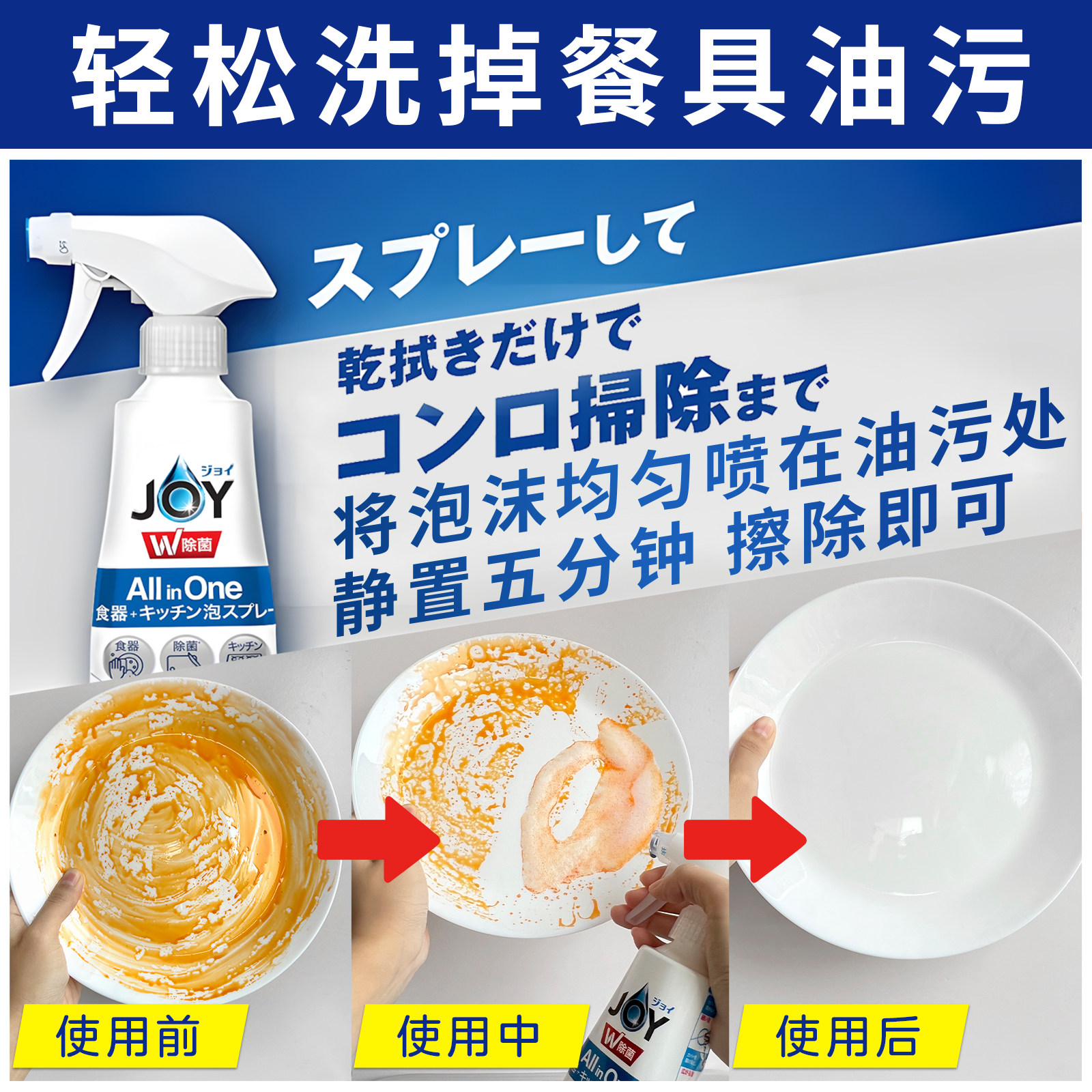 日本宝洁JOY洗洁精泡沫喷雾去油污无残留除菌消臭厨房餐具清洁剂