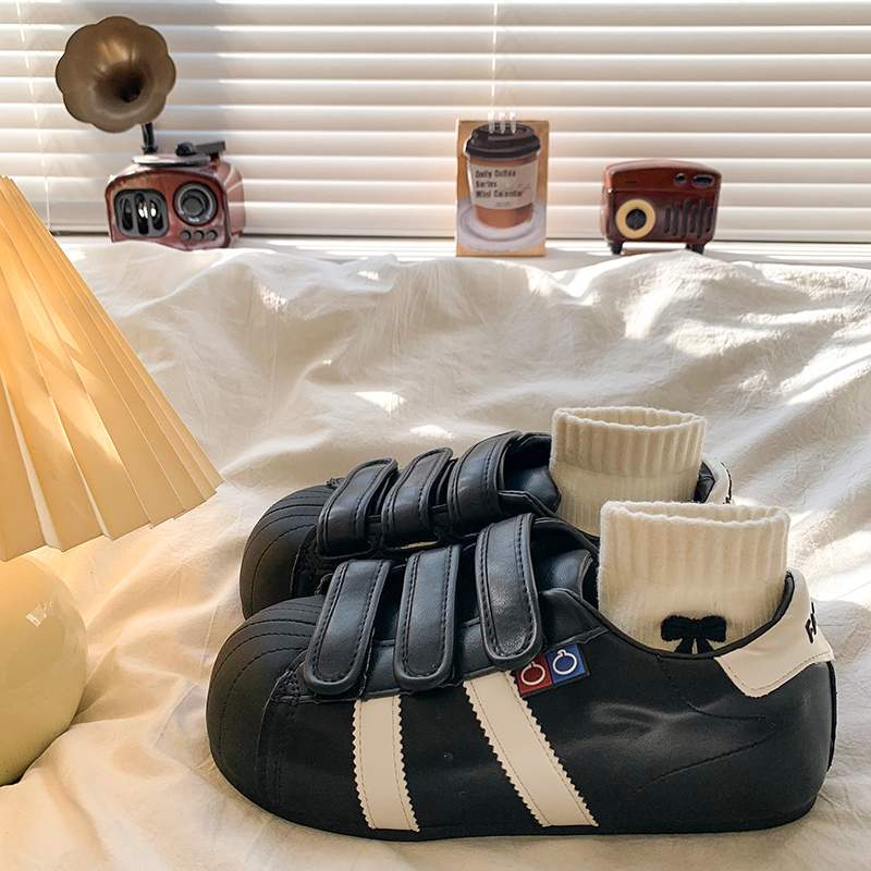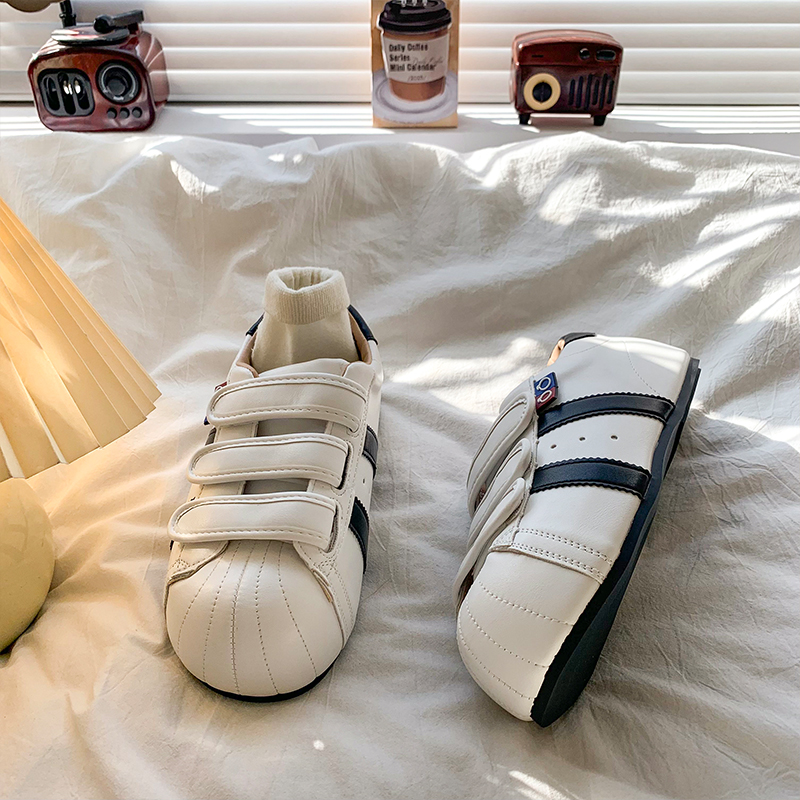 丑萌魔术贴贝壳头德训鞋女2025夏秋新款平底内增高运动鞋休闲板鞋