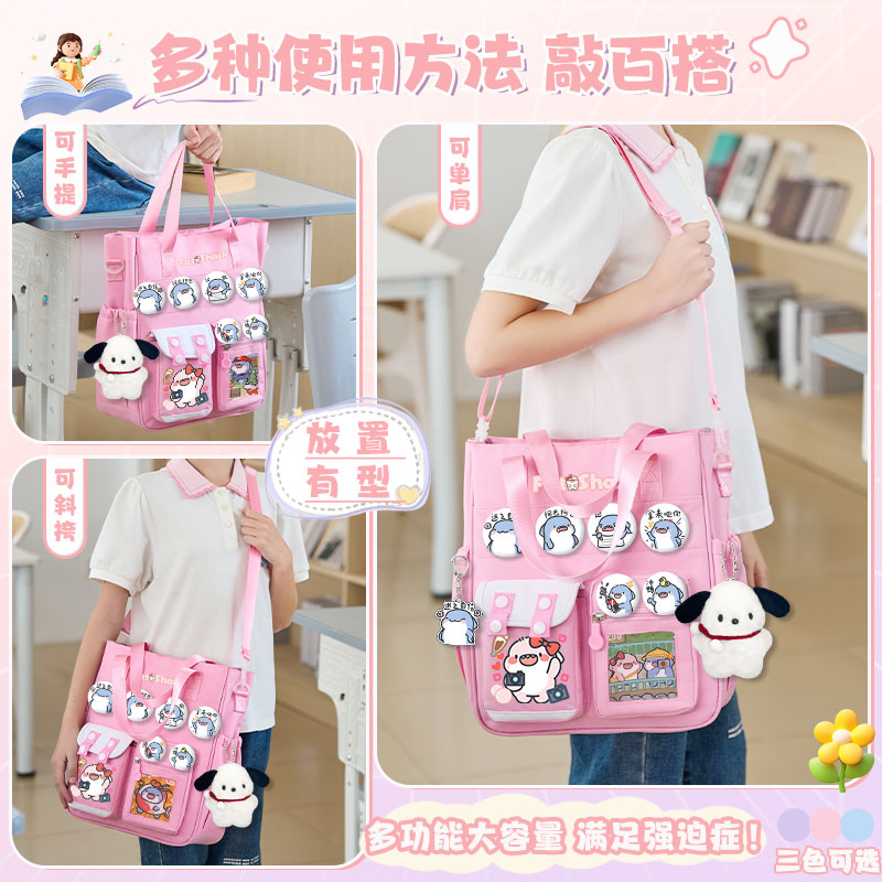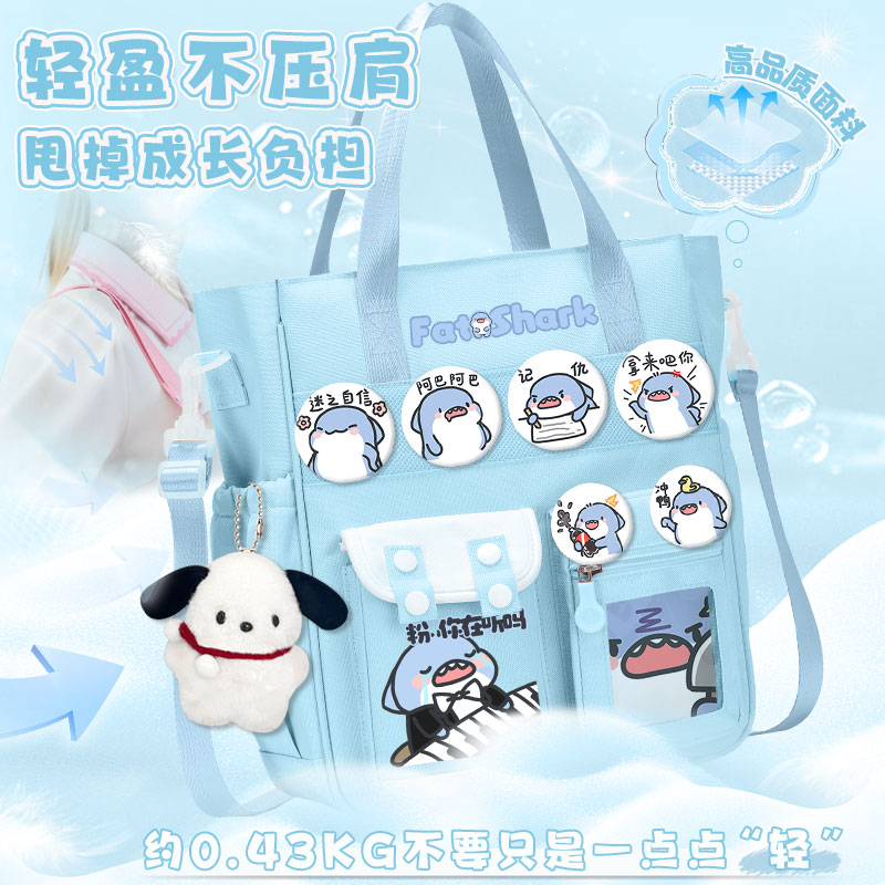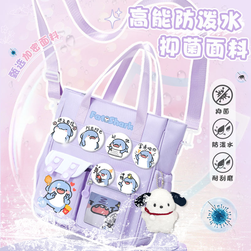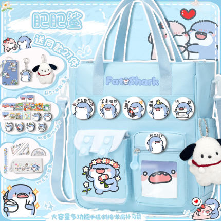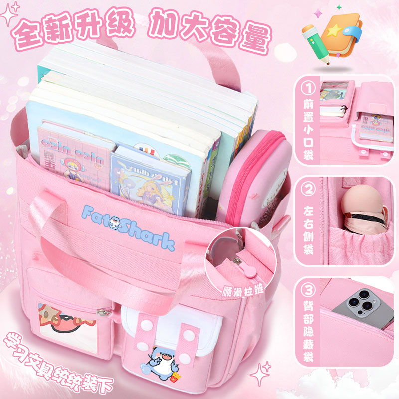 肥肥鲨正版联名手提补习袋男女初中小学生大容量斜挎包包儿童可爱