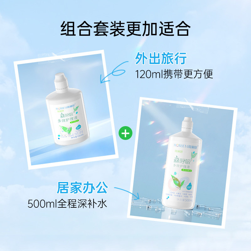 海俪恩护理液森呼吸500*2+120ml美瞳近视隐形眼镜药水大小瓶官网
