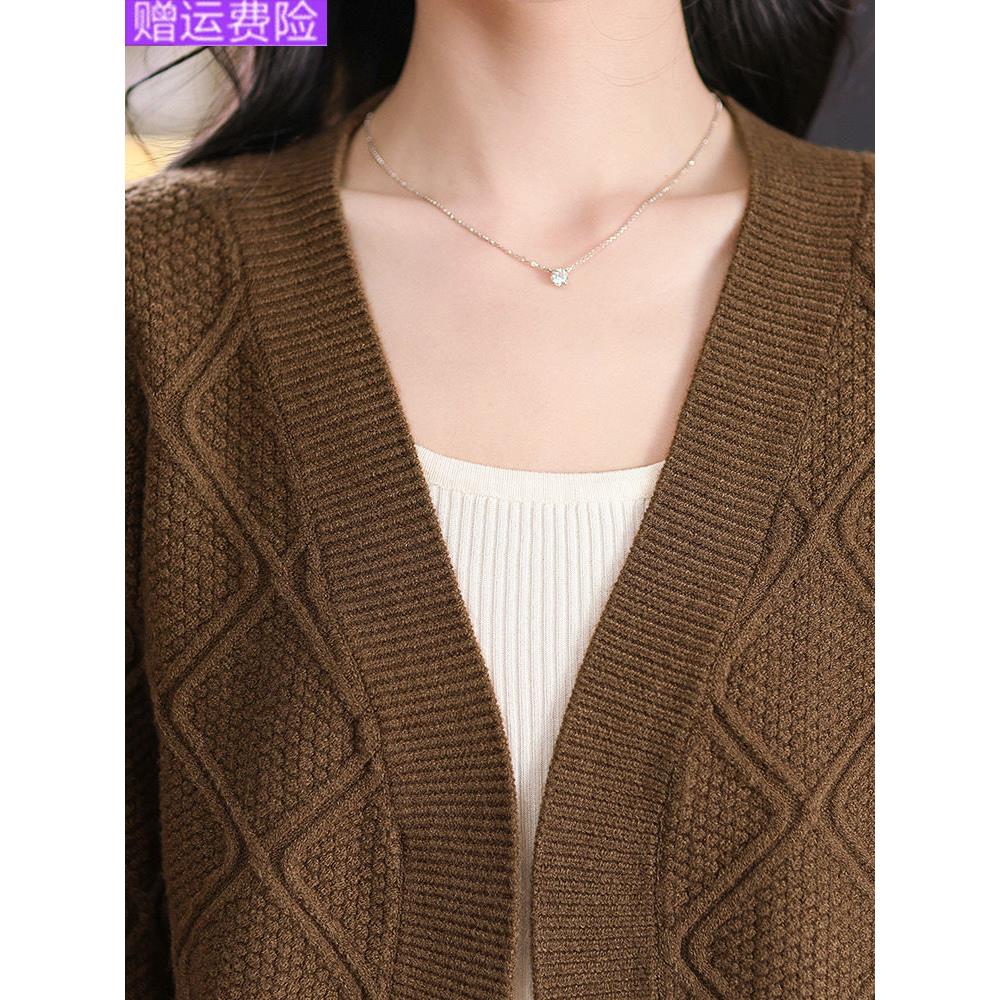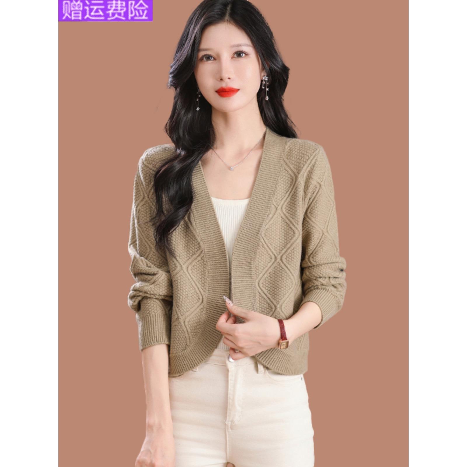 羊毛针织开衫毛衣外套女士春秋2025新款披肩洋气外搭高腰短款上衣
