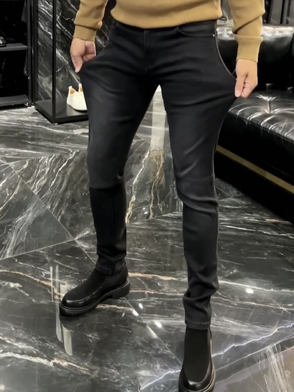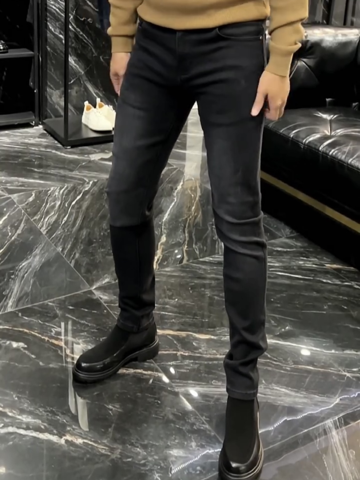 高端2025秋冬新品男士牛仔裤时尚简约百搭气质修身小脚裤帅气男裤