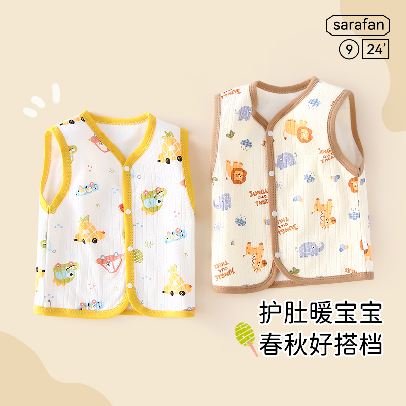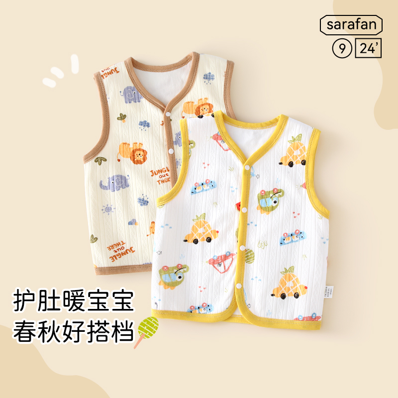 婴儿马甲春秋款宝宝纯棉a类背心儿童保暖全棉马夹男童外穿坎肩女