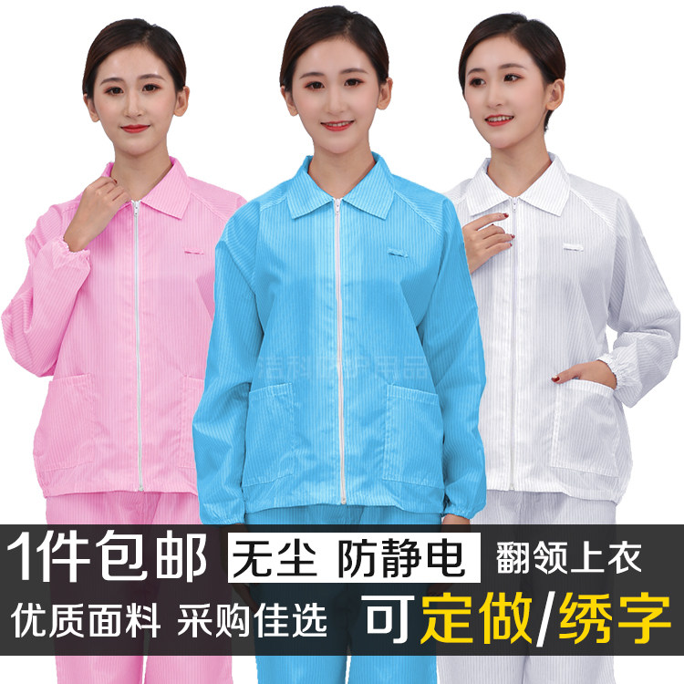 洁科防静电服翻领防静电夹克 电子制药食品无尘工作服 分体服上衣