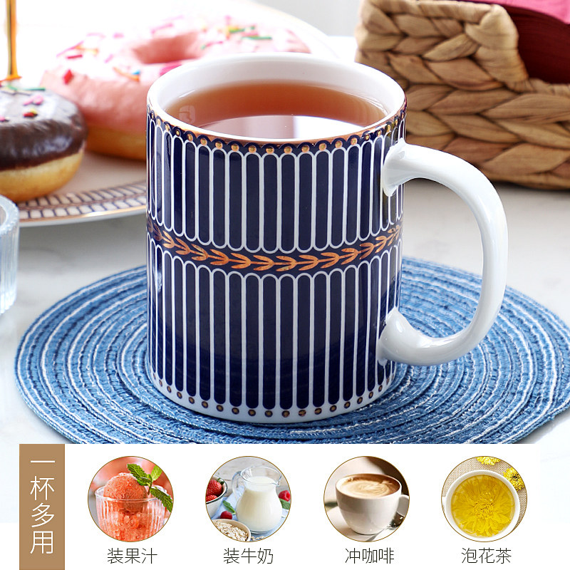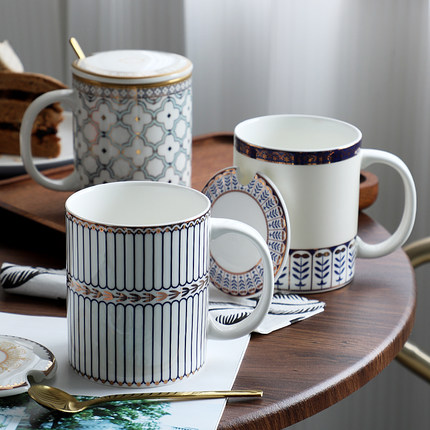 高颜值精致杯子马克杯带盖勺办公室陶瓷水杯咖啡杯家用