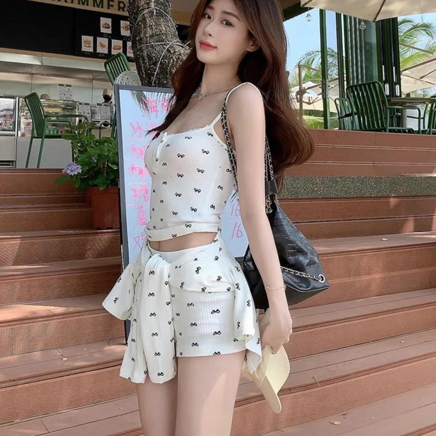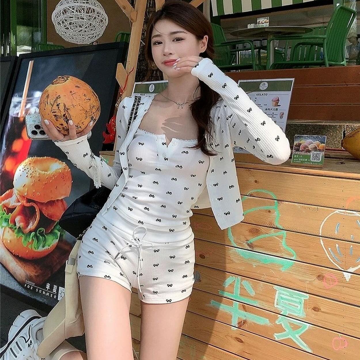 可爱蝴蝶结长袖罩衫显瘦遮肚分体带胸垫平角裤性感三件套游泳衣女