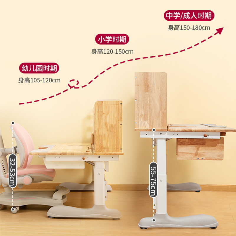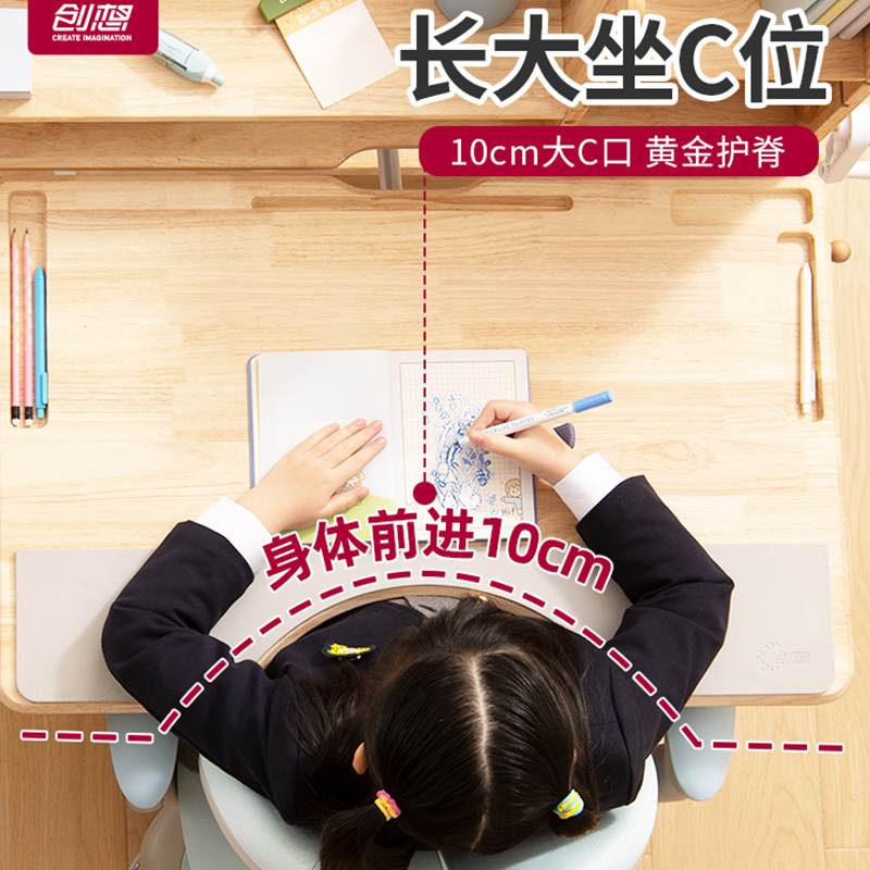 创想儿童实木学习桌小学生书桌写字桌家用宝宝桌子椅子套装多功能