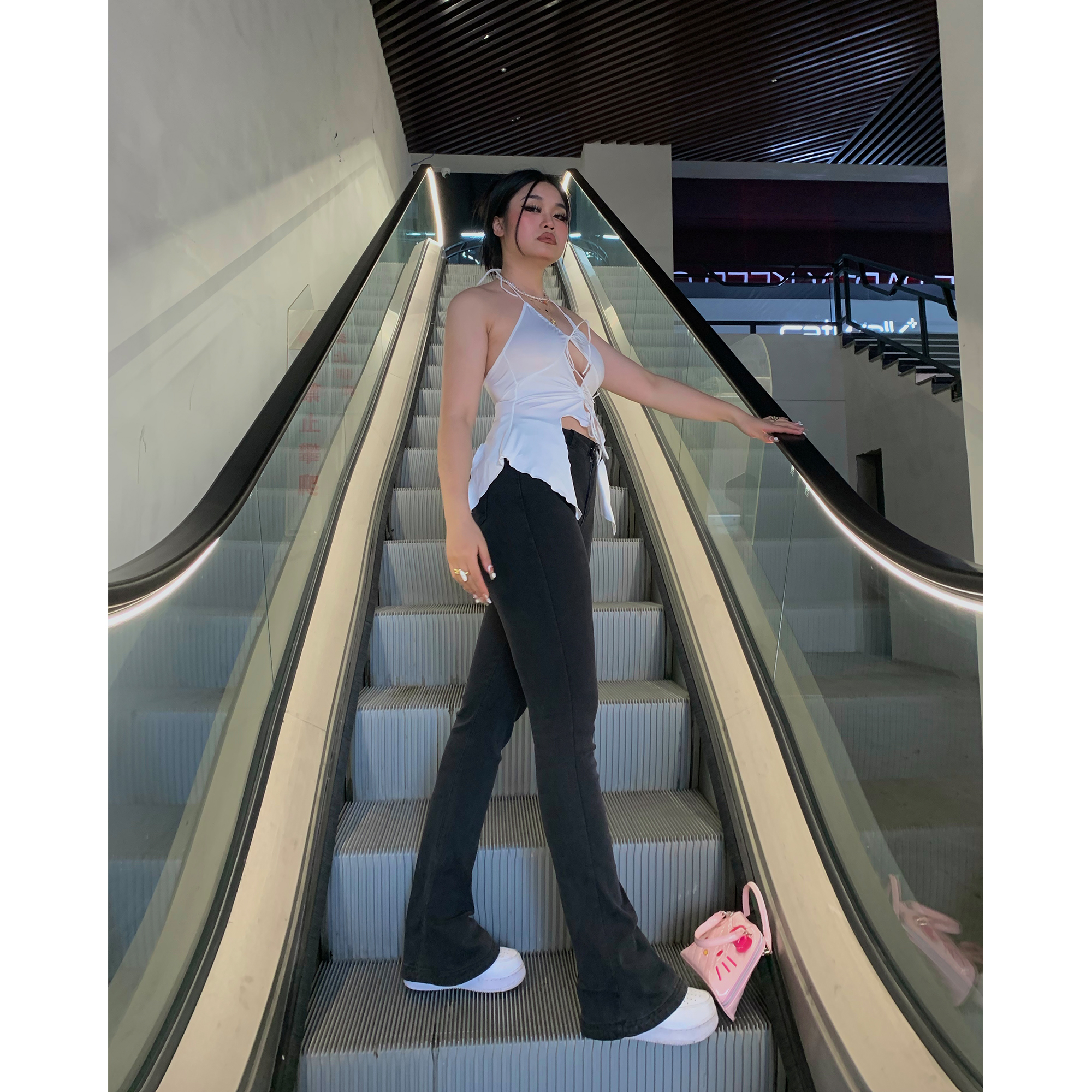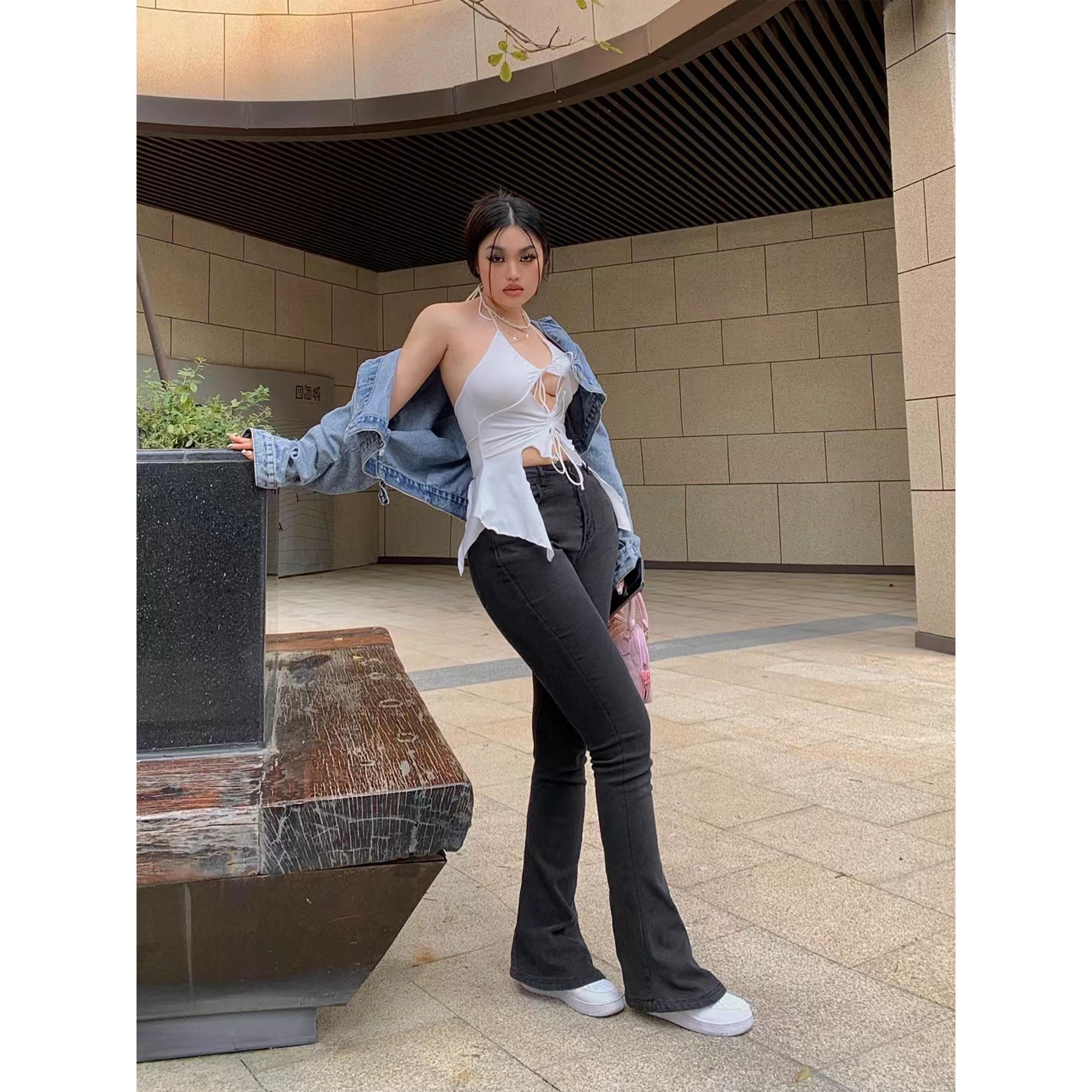 马蹄裤巨显腿细腿长常规棉弹牛仔