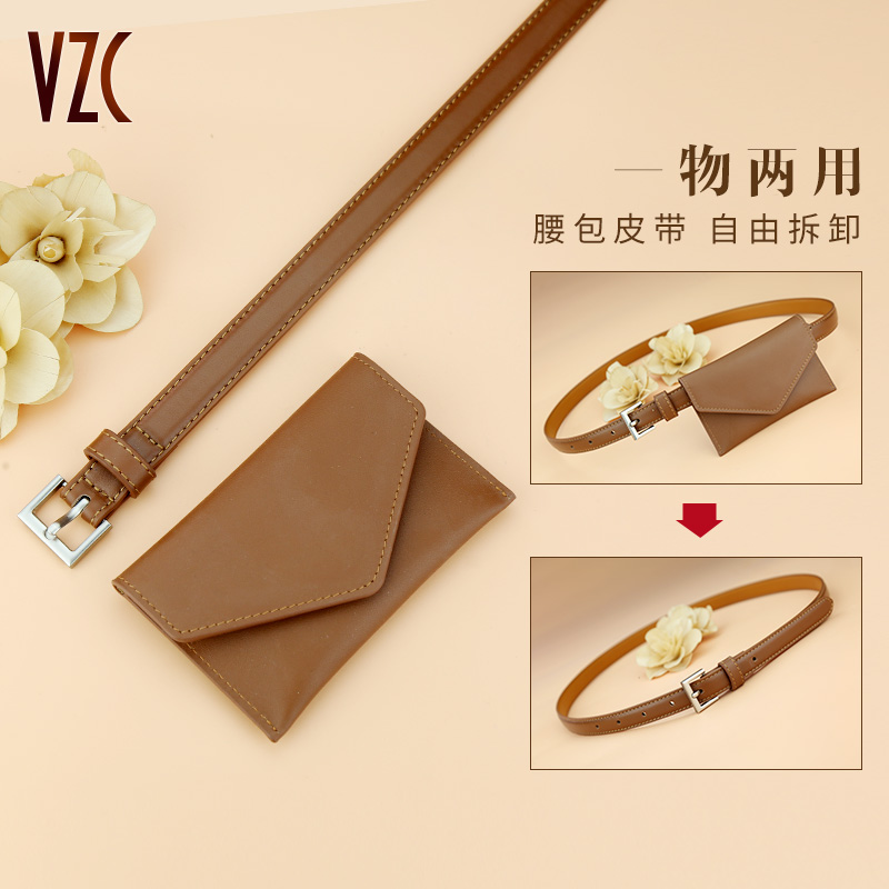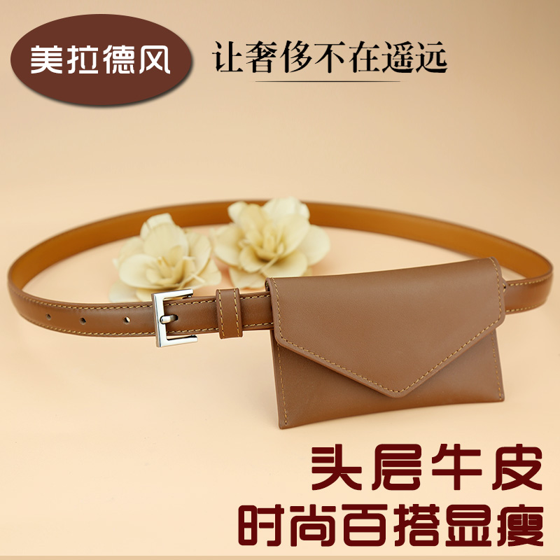 皮带腰包女真皮头层牛皮棕咖色复古时尚潮流个性装饰配裙牛仔裤带