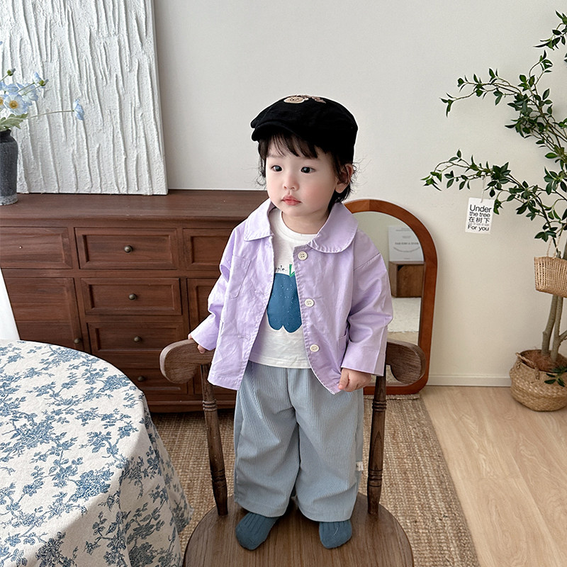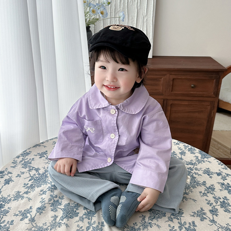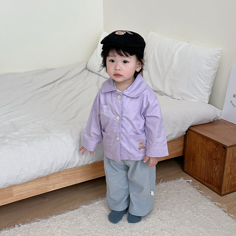 婴幼儿韩版春秋装刺绣外套长裤套装女宝宝小熊衬衫女童纯色休闲裤