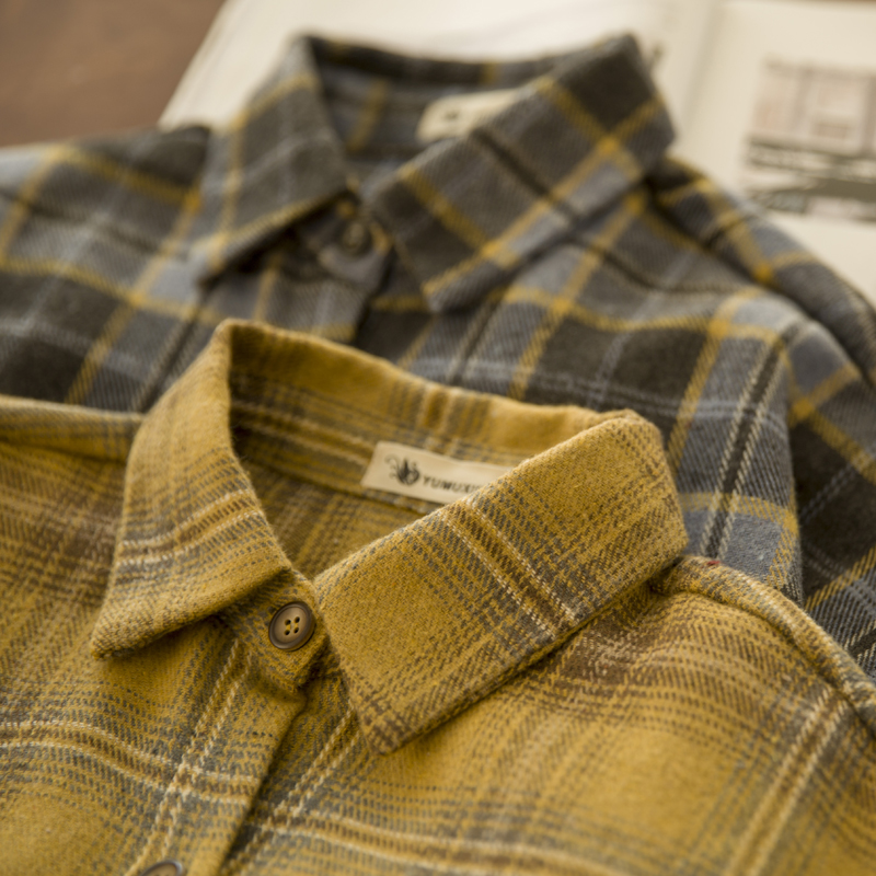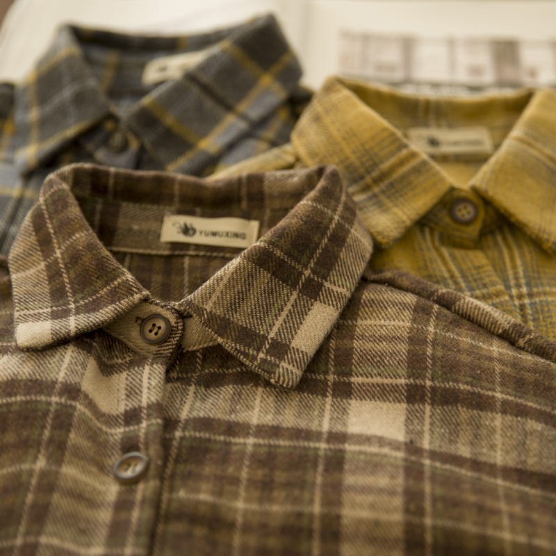 翩然 秋冬新款加厚磨毛格子衬衫女复古港味韩版宽松休闲衬衣大版