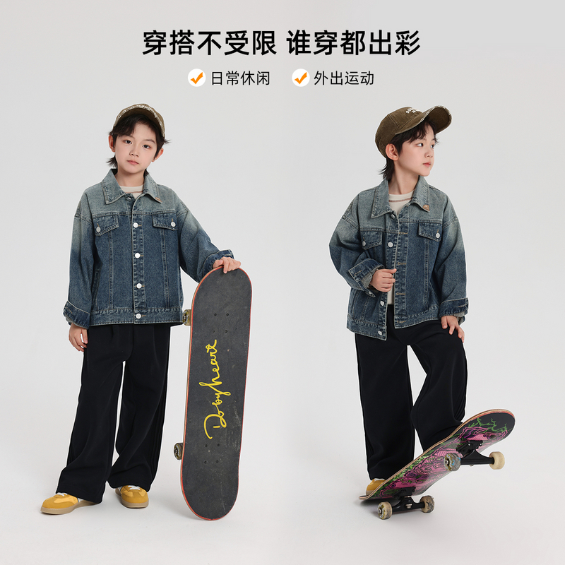 布丁哈鲁童装秋装男童洋气上衣2025春秋新款儿童渐变牛仔外套