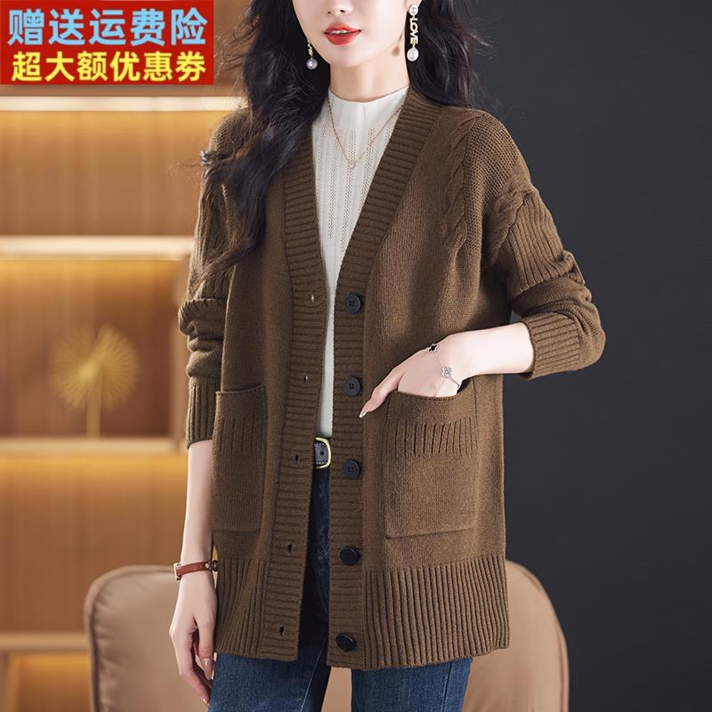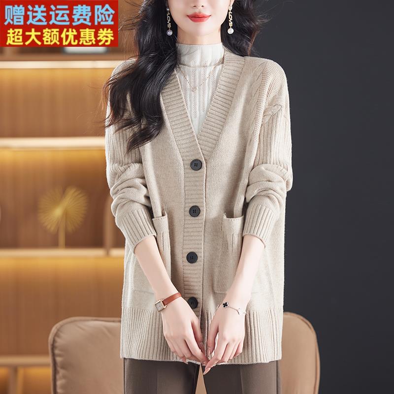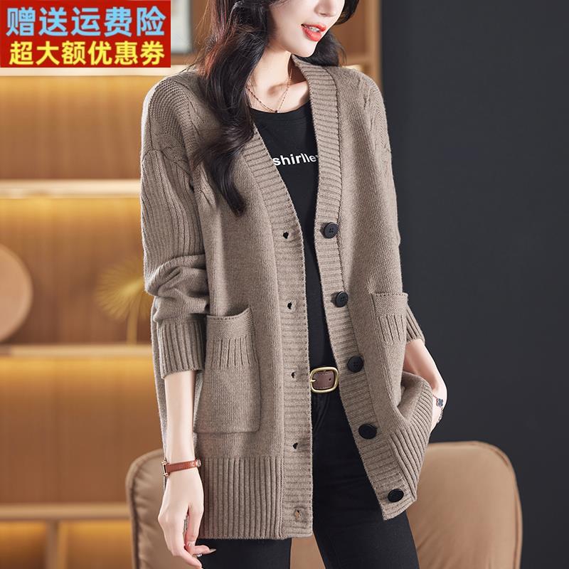 加肥加大码女装宽松200斤胖妹妹羊毛衫针织开衫女中长款毛衣外套