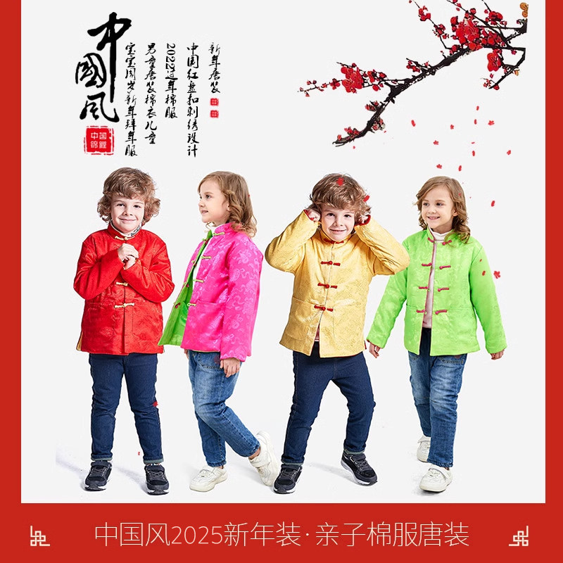 儿童拜年服男女童唐装双面轻薄棉衣冬女童过年外套宝宝亲子新年装