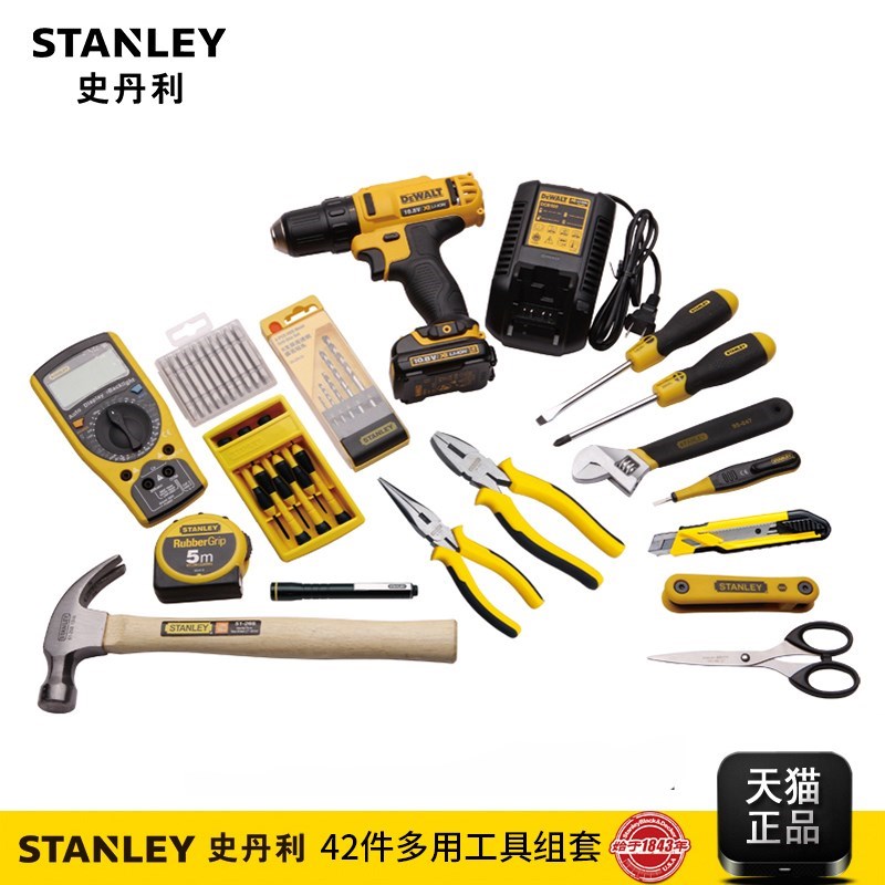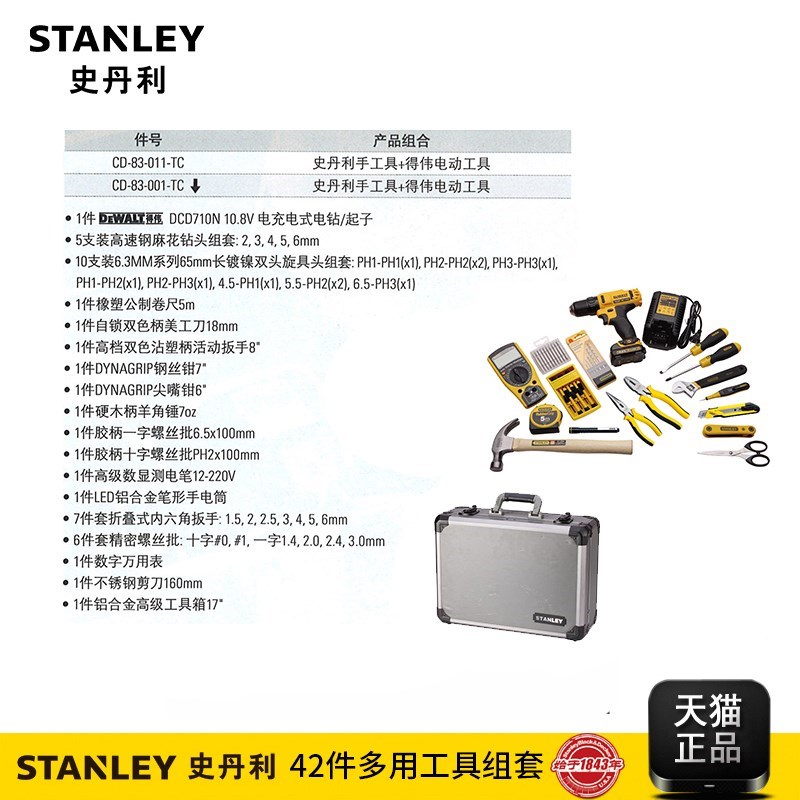 史丹利家用套装多功能42件电工维修工具带充锂电钻CD-83-011-TC