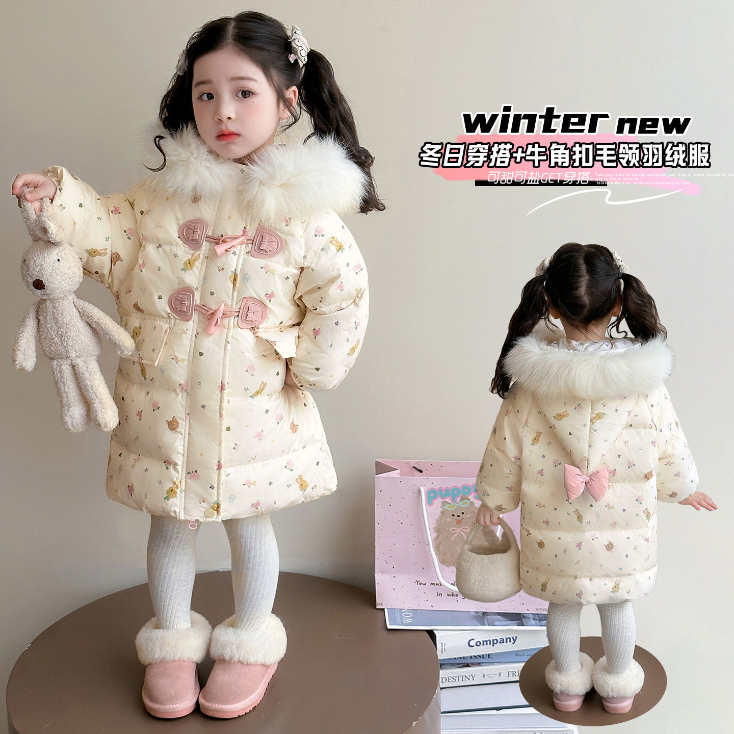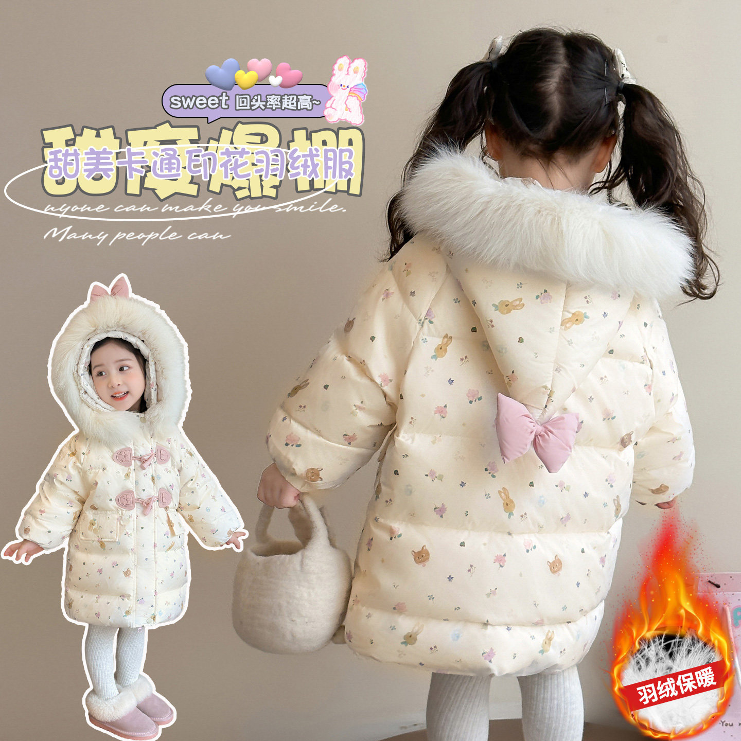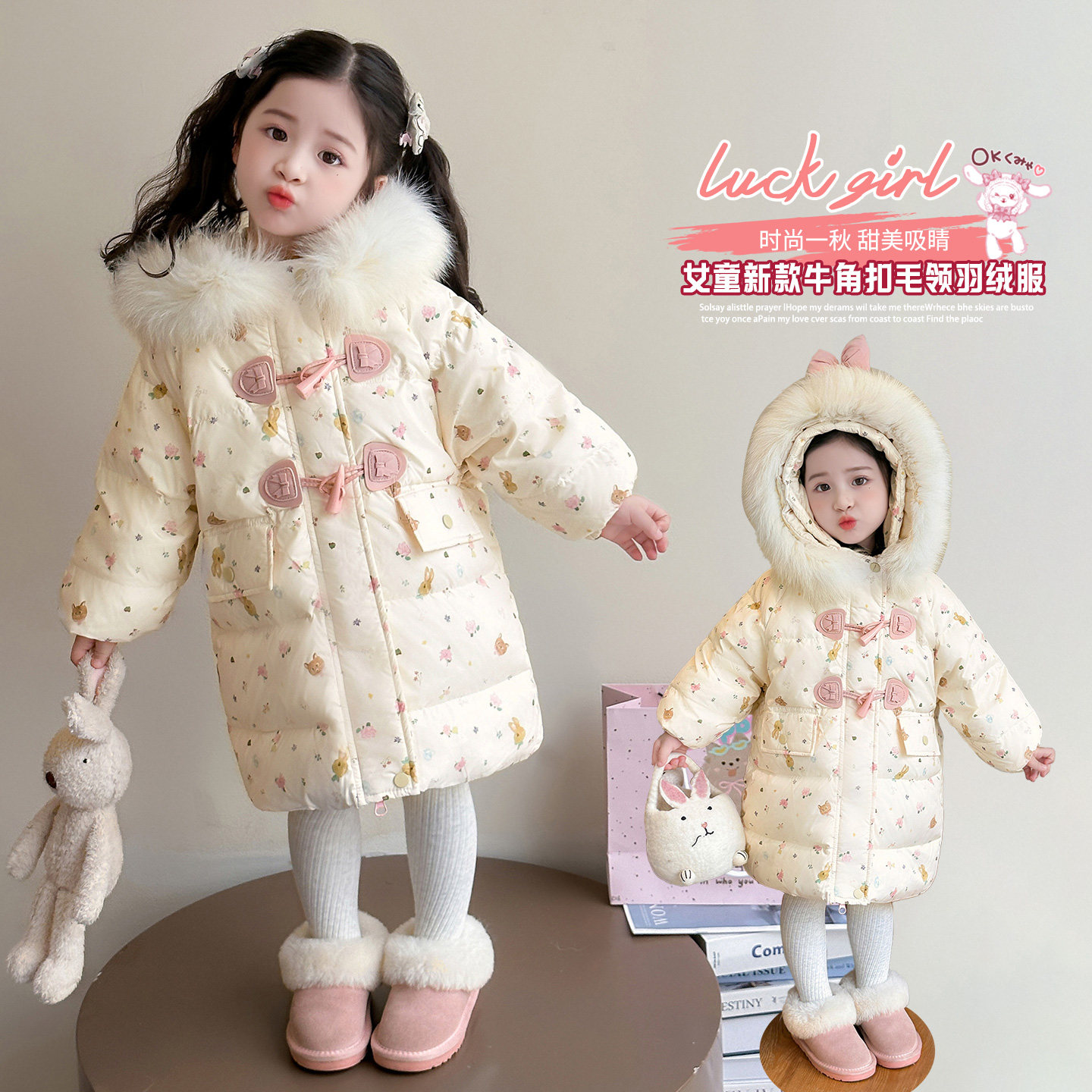 女童羽绒服2025新款爆款洋气宝宝女宝冬季女款中长款冬装儿童外套