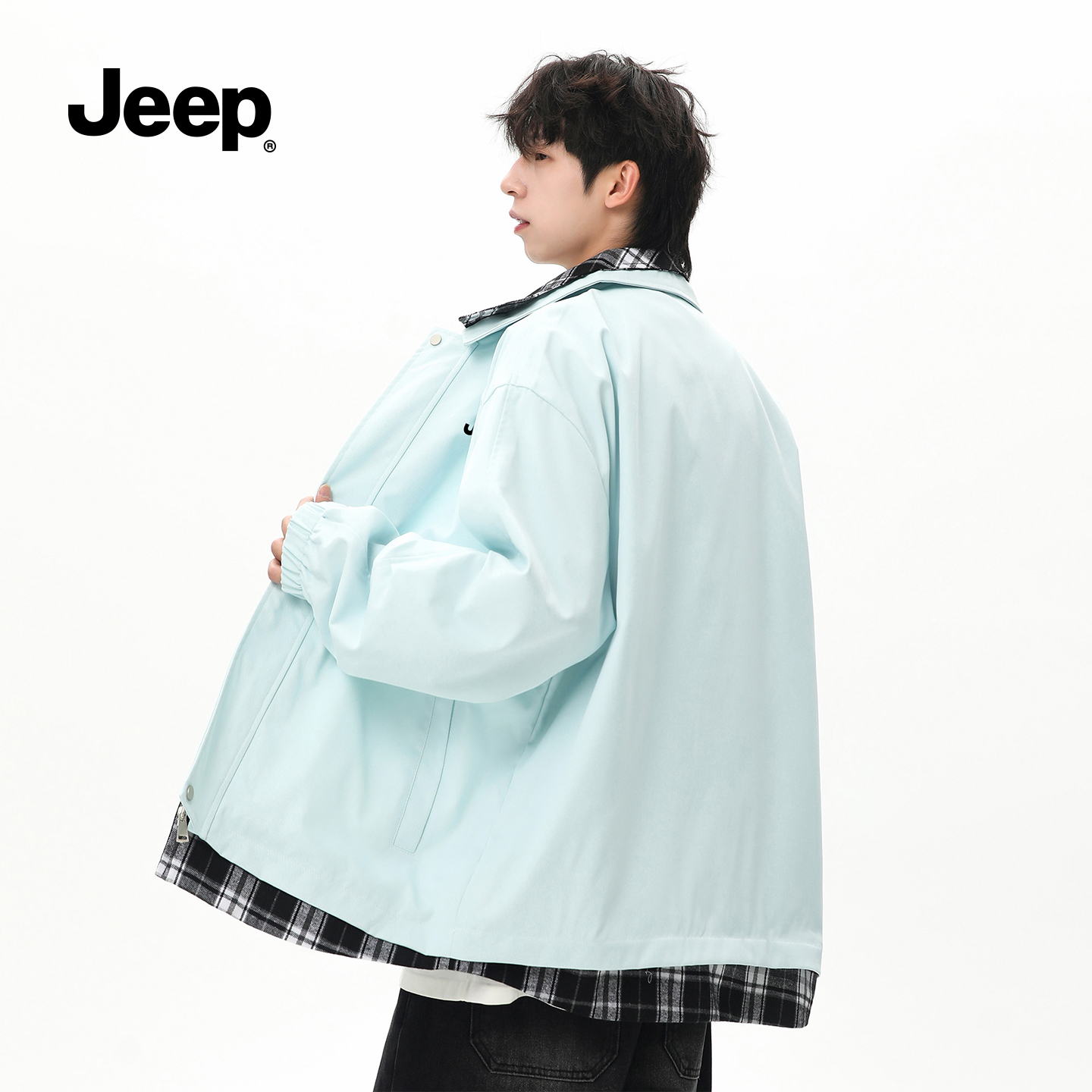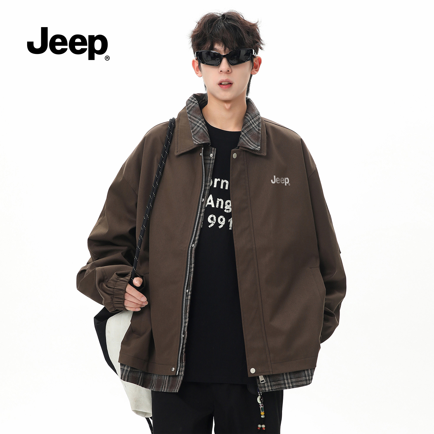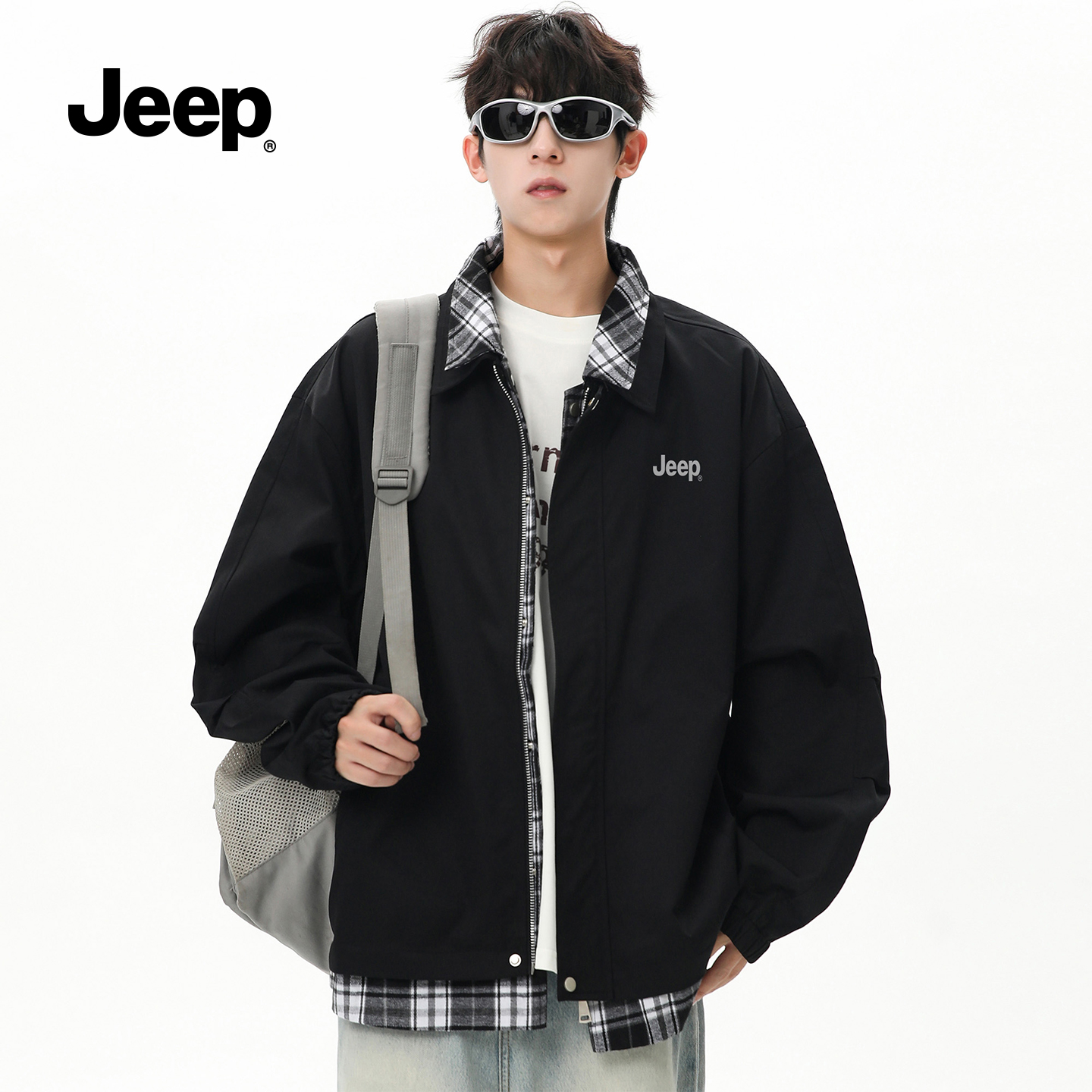 jeep吉普旗舰店休闲衬衫夹克假两件上衣翻领潮流秋季防风复古外套