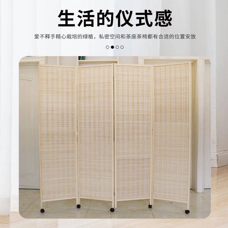 移动竹编屏风隔断客厅可折叠玄关办公室遮挡现代简约滑轮推拉家用