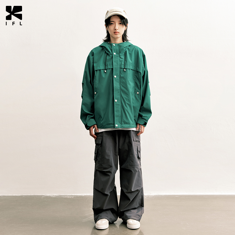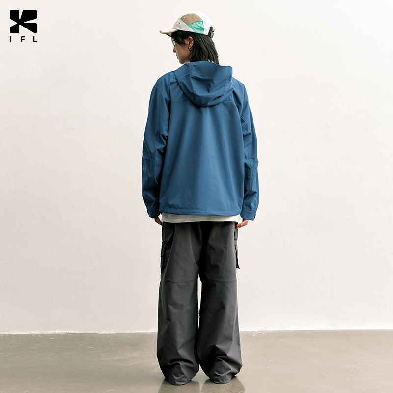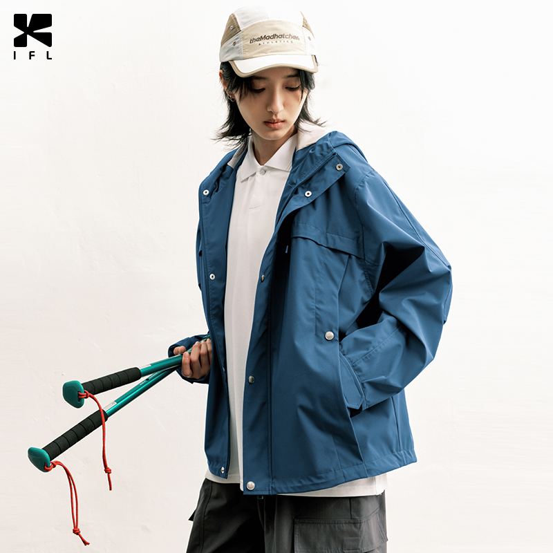 IFL复古软壳连帽冲锋衣女短款夹克外套春秋运动休闲透气冲锋衣