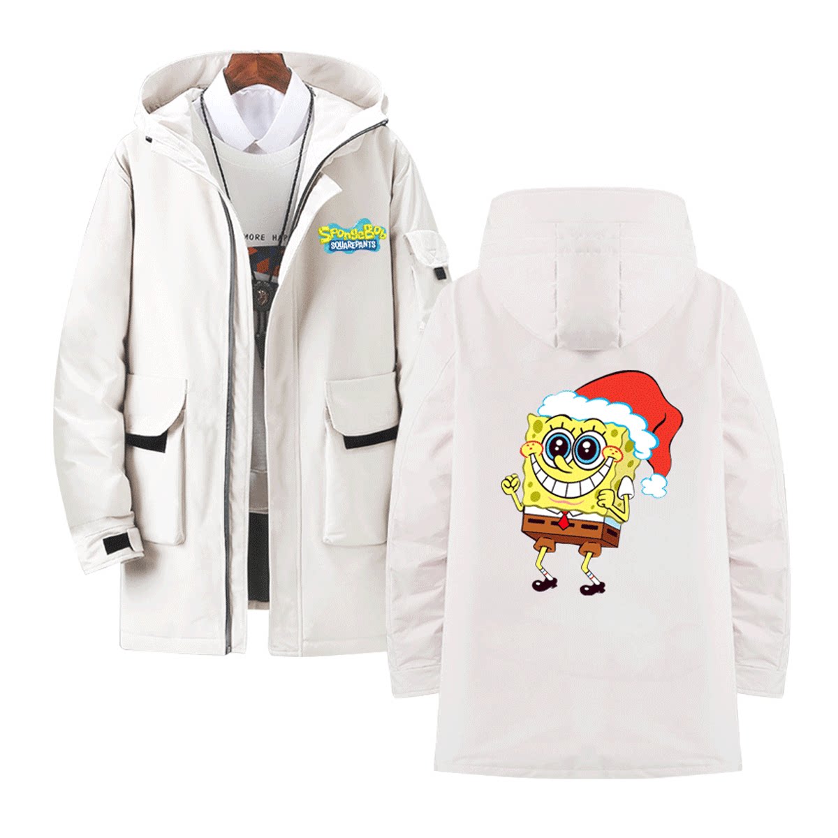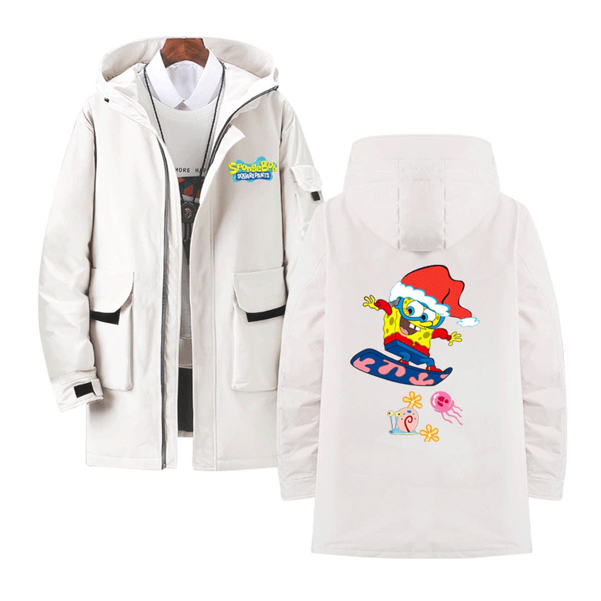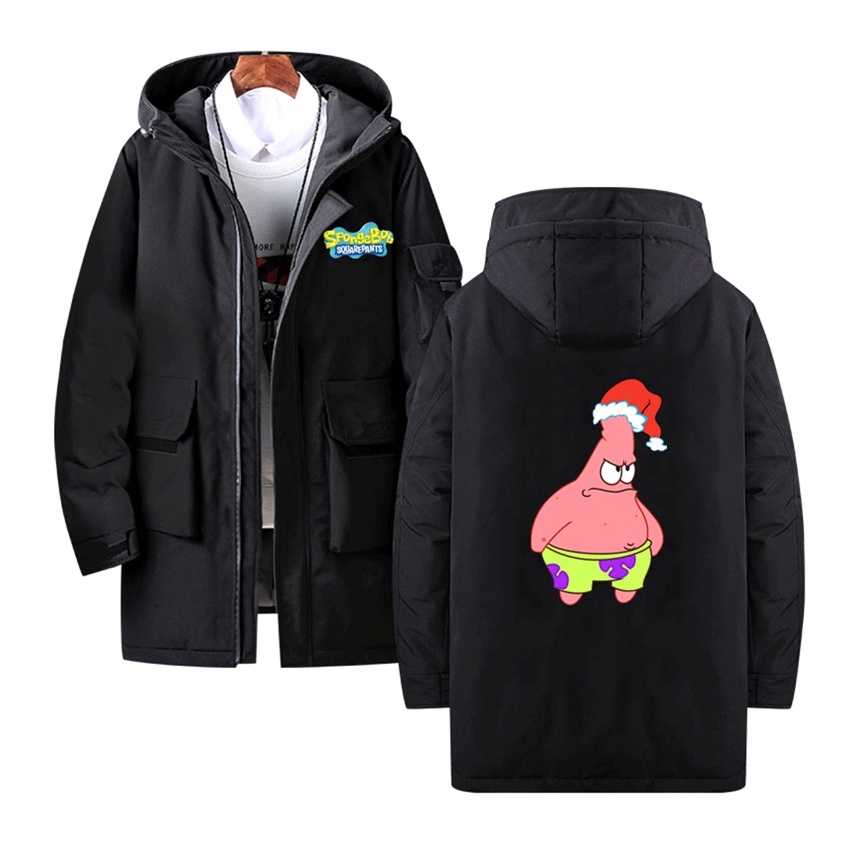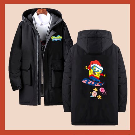 海绵宝宝联名圣诞老人卡通派大星宽松休闲潮流定制连帽外套羽绒服