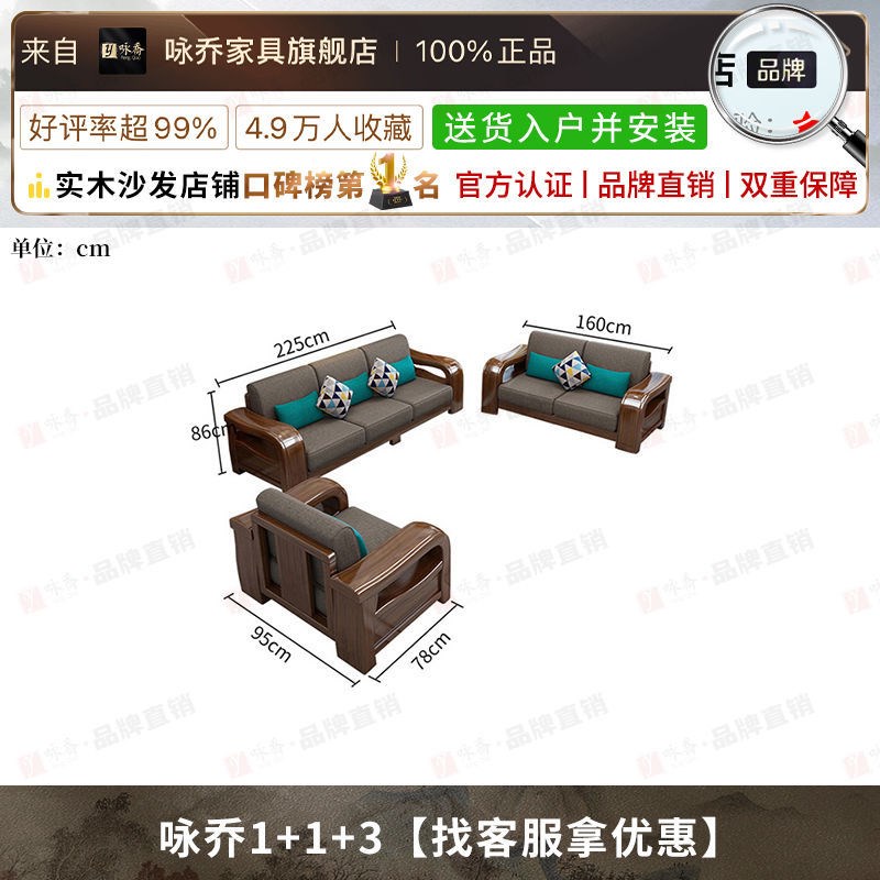 咏乔胡桃木实木沙发组合现代中式客厅小户型家用冬夏两用储物家具