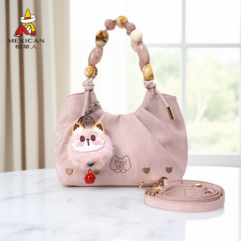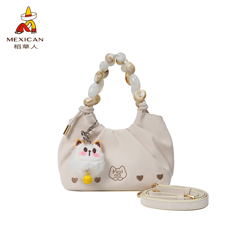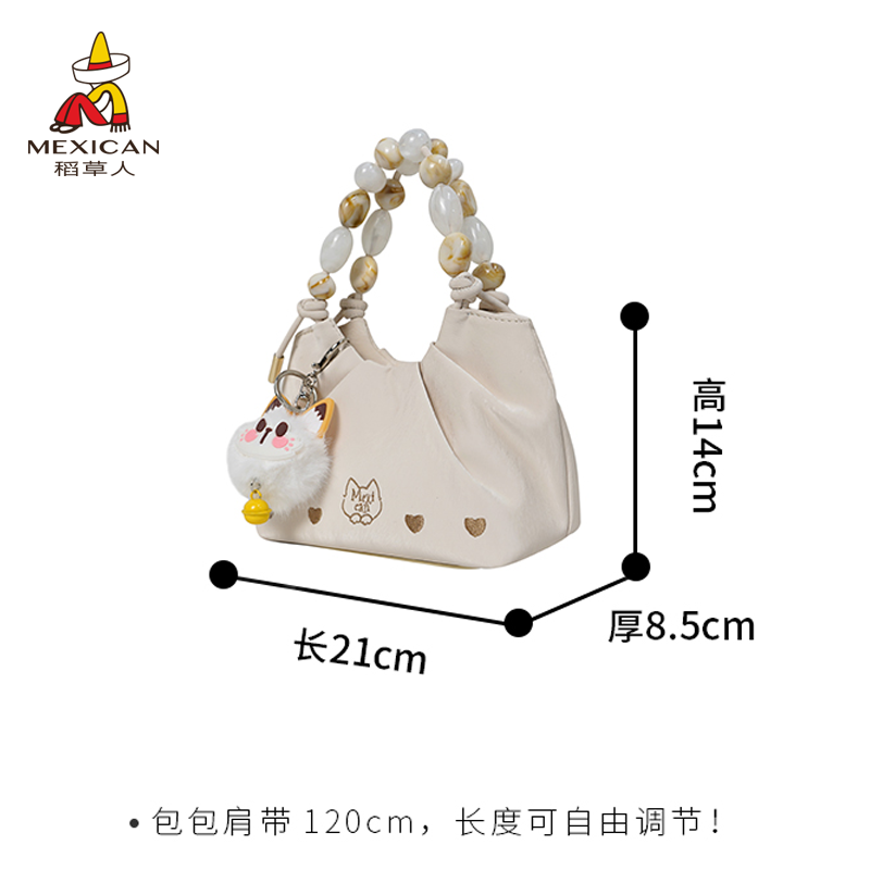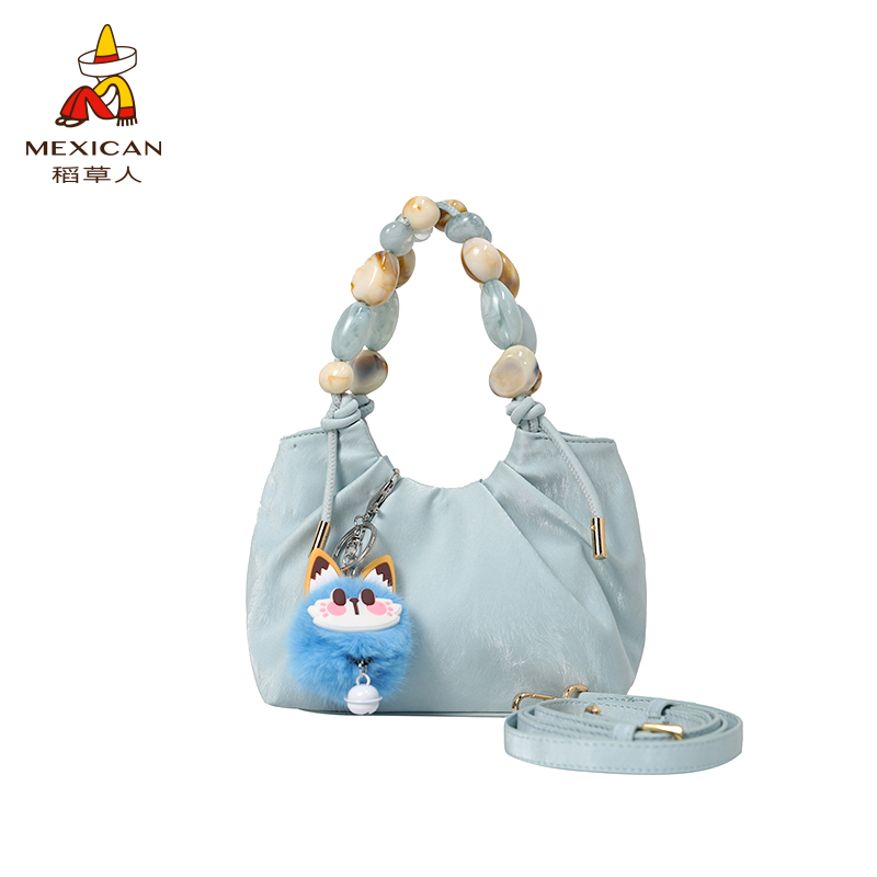 稻草人包包女新款可爱褶皱单肩包洋气百搭斜挎包串珠手提小包正品