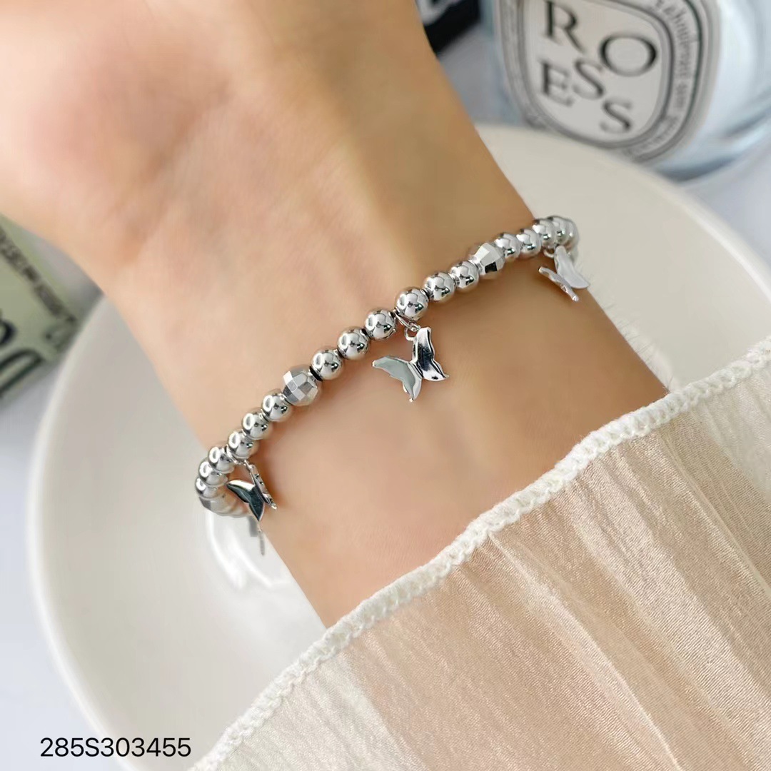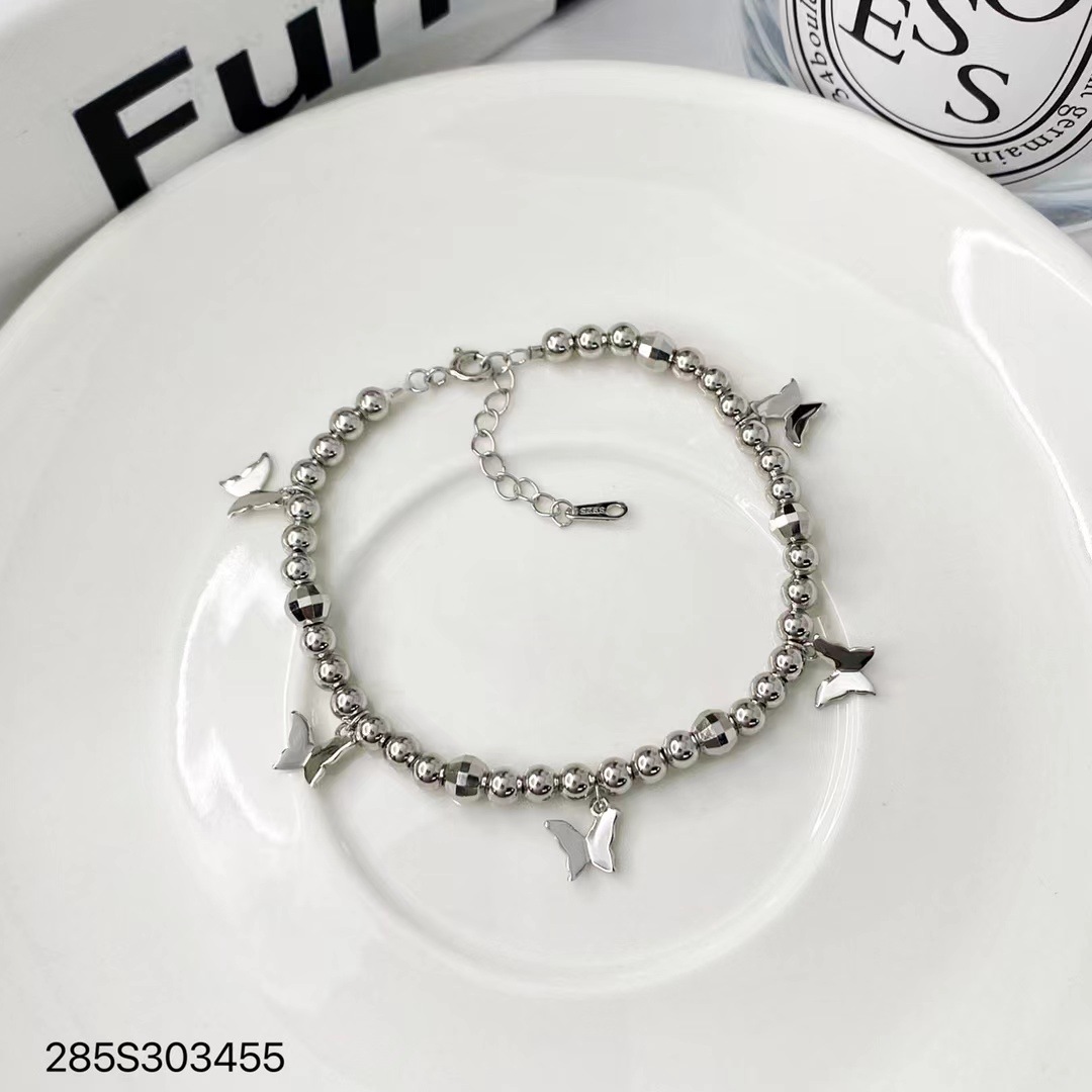 s925纯银手链女简约小众精致蝴蝶串珠手串个性百搭高级年轻款手链