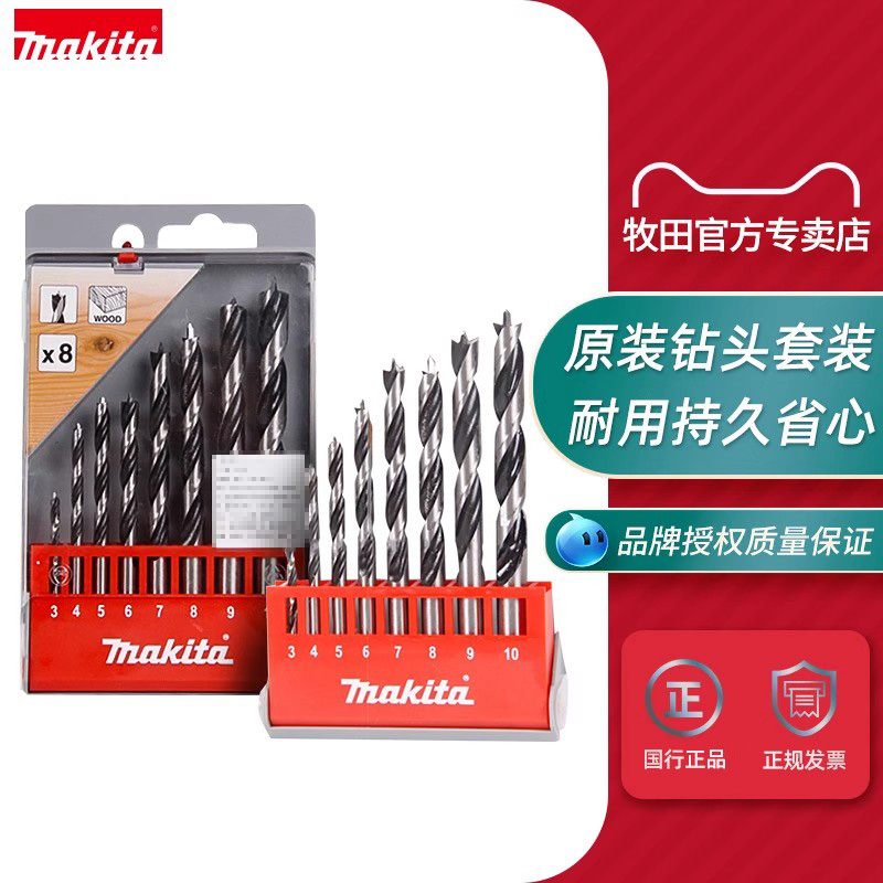 牧田木工钻头套装电钻打孔扩孔器开孔实木麻花三尖钻手枪钻头