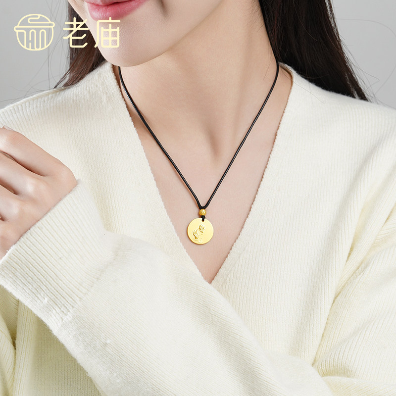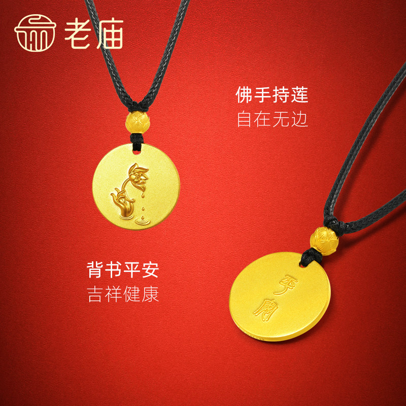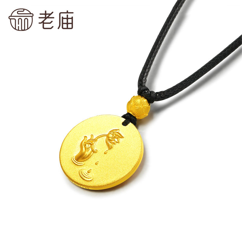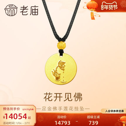 老庙黄金足金佛手挂坠古法雅致手持莲花平安吉祥健康福运百搭送礼