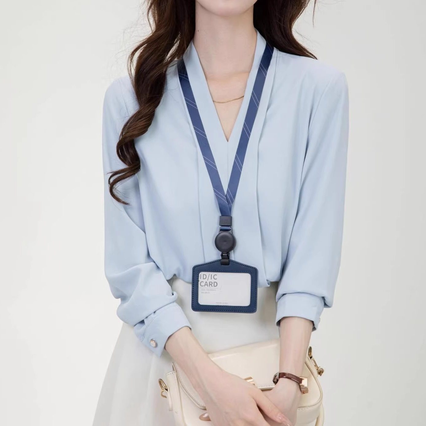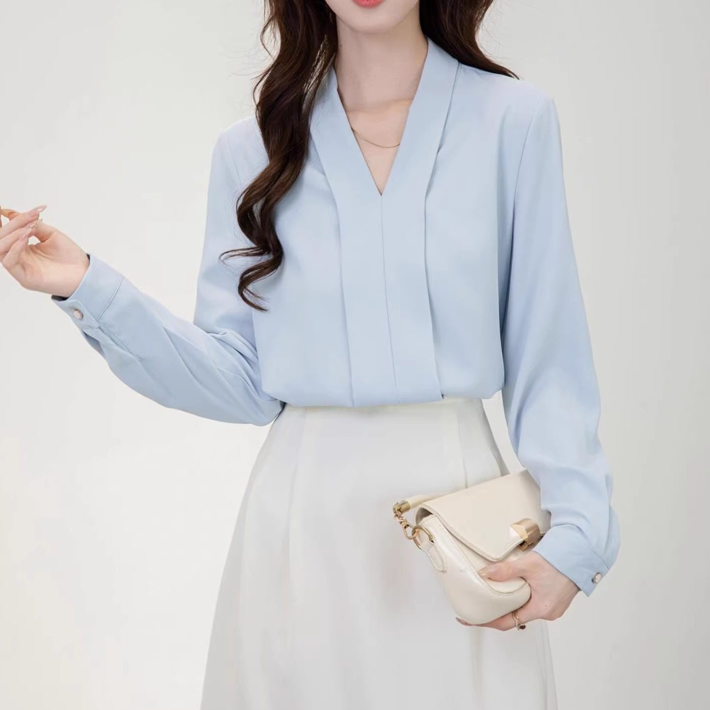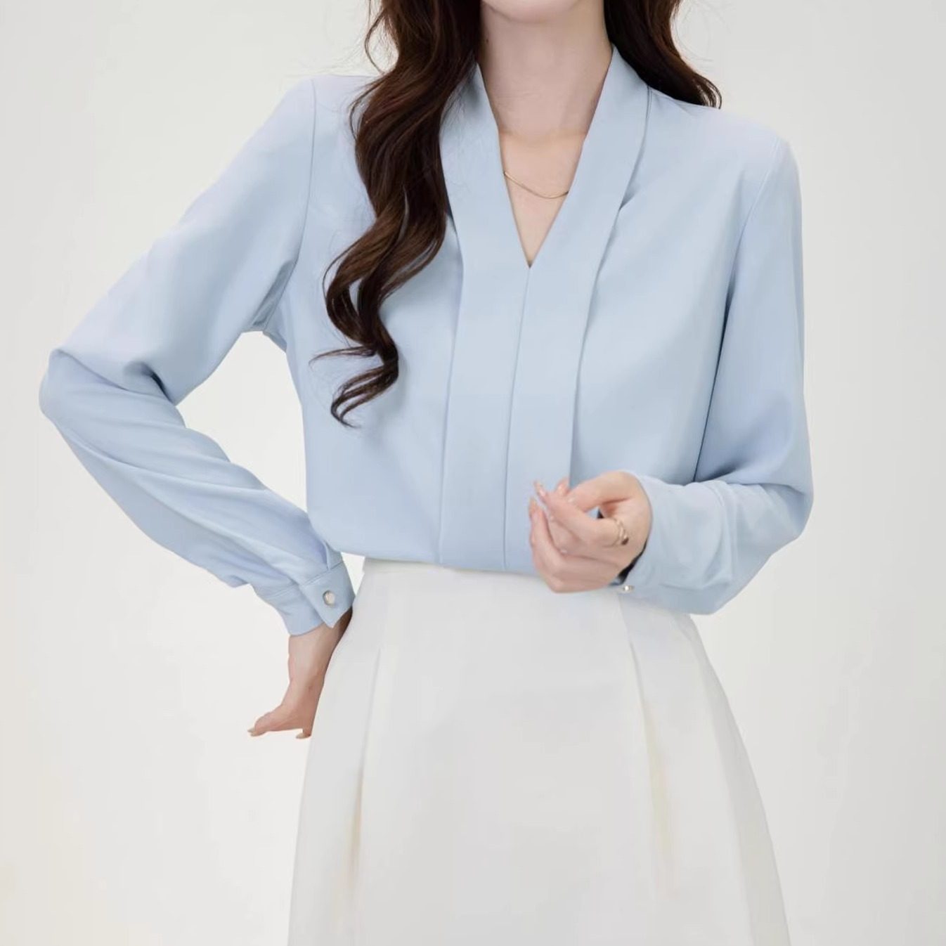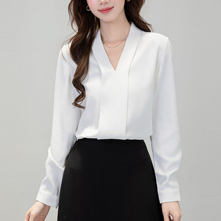 法式V领白色雪纺衬衫女长袖2026春设计感小众高级感职业面试衬衣