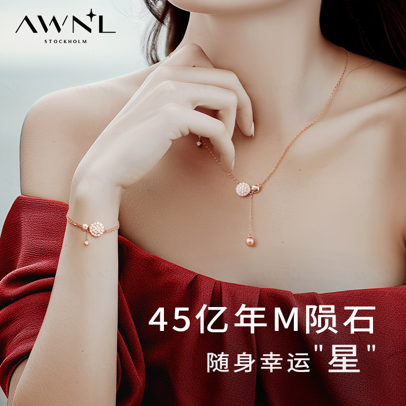 AWNL白冰同款北欧M陨石暗夜许愿项链女款小众礼物送女友