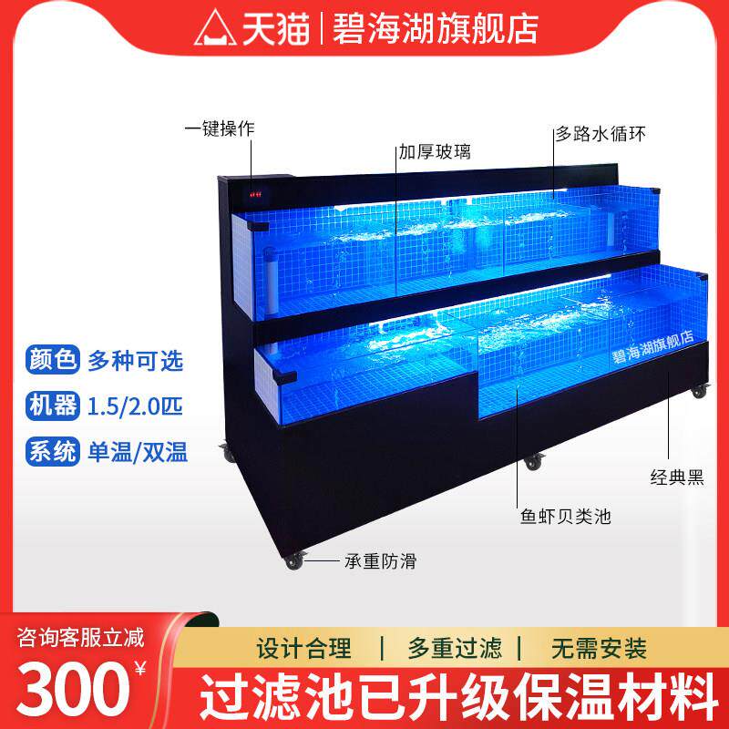 移动海鲜池商用一体饭店专用海鲜鱼缸制冷机超市水产海鲜缸贝类池