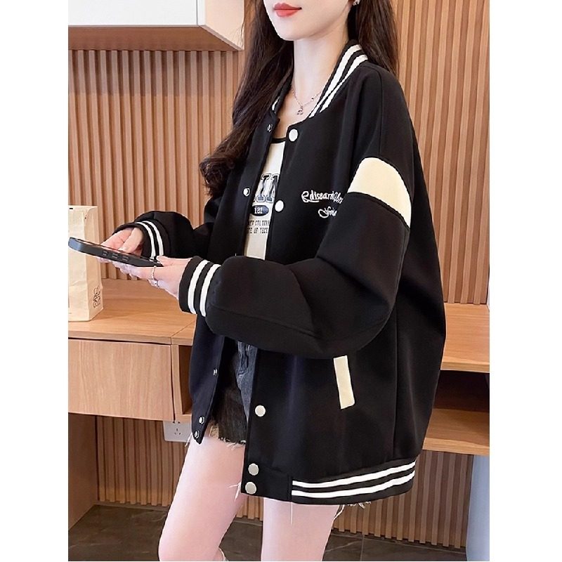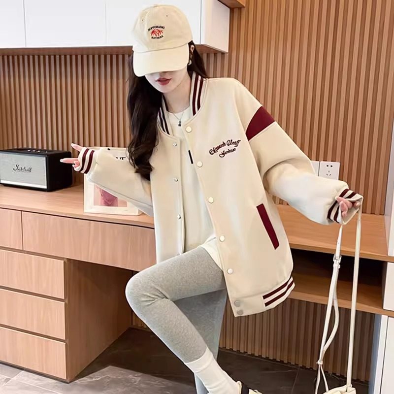 秋冬休闲外套女百搭美式棒球服加绒加厚夹克开衫2025新款学生上衣