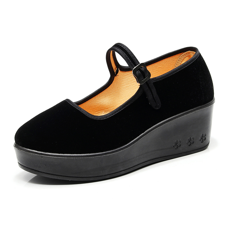 老北京布鞋女工作鞋女黑色平跟鞋酒店黑布鞋厚底坡跟妈妈鞋跳舞鞋