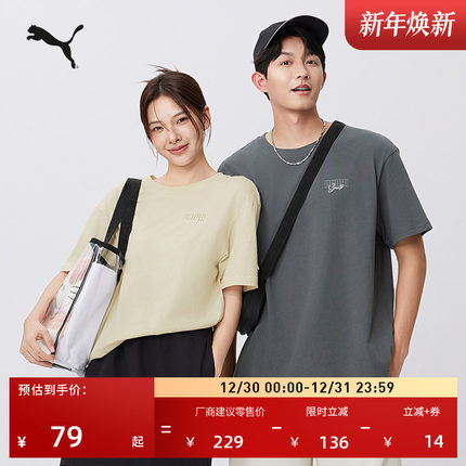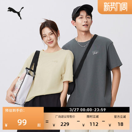 纯棉宽松印花休闲短袖T恤男女情侣PUMA彪马夏季运动上衣633788