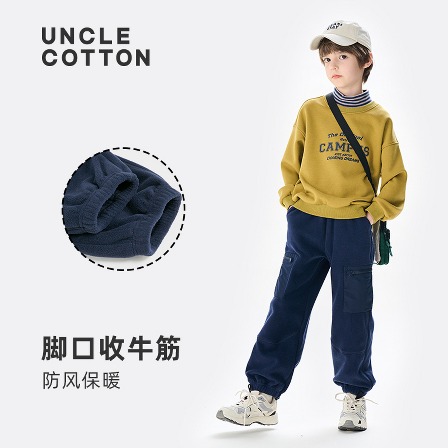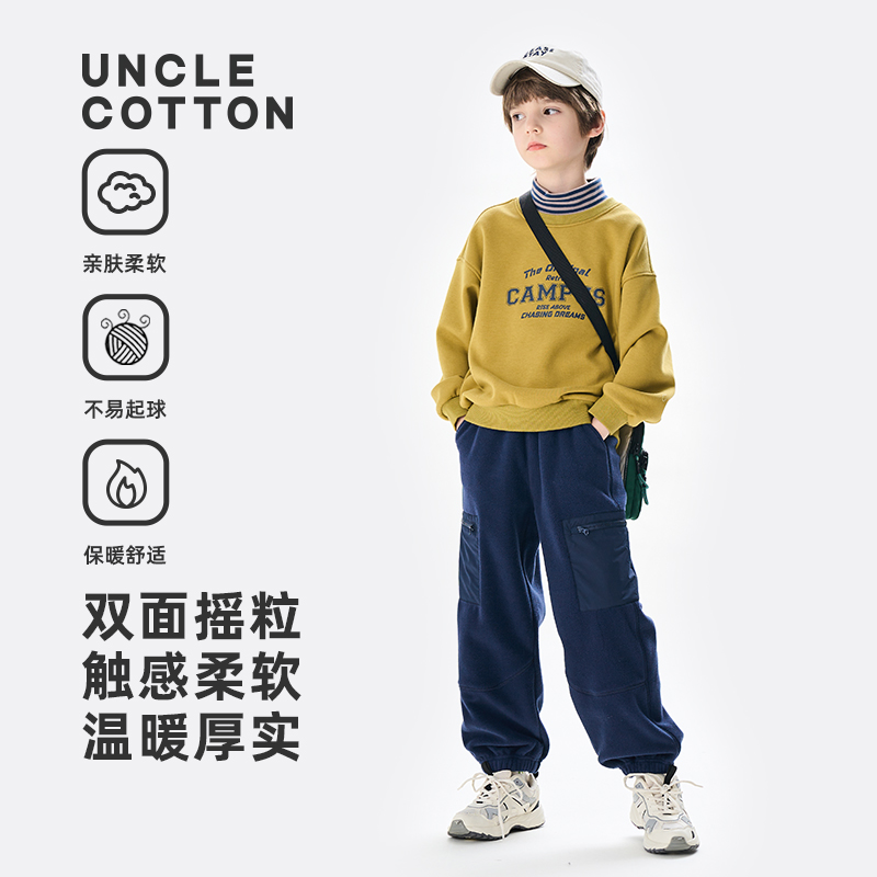 【加厚双面摇粒绒卫裤】棉叔叔男童休闲卫裤宽松大贴袋收脚口长裤