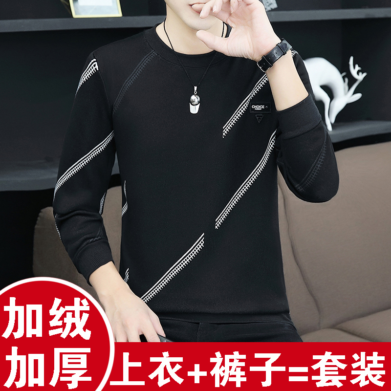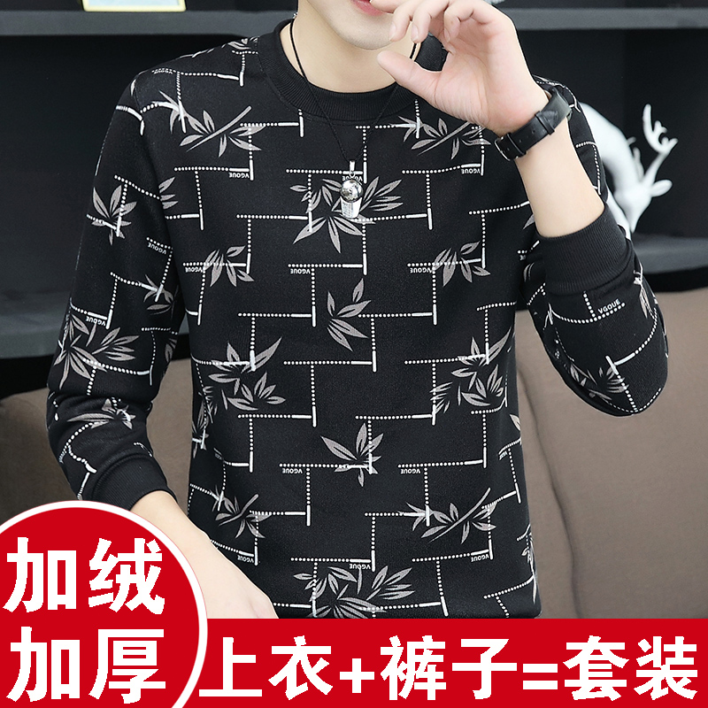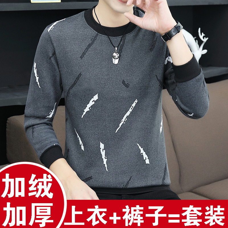 男士保暖内衣套装加绒加厚冬季上装衣服一套秋衣秋裤圆领打底衫男