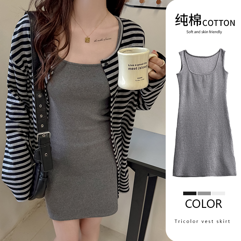 法式纯棉方领吊带连衣裙女2025新款春夏季性感辣妹修身显瘦包臀裙