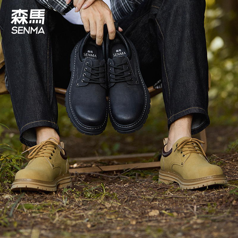 森马工装鞋男英伦风2025新款秋季潮流百搭商务休闲皮鞋低帮马丁靴